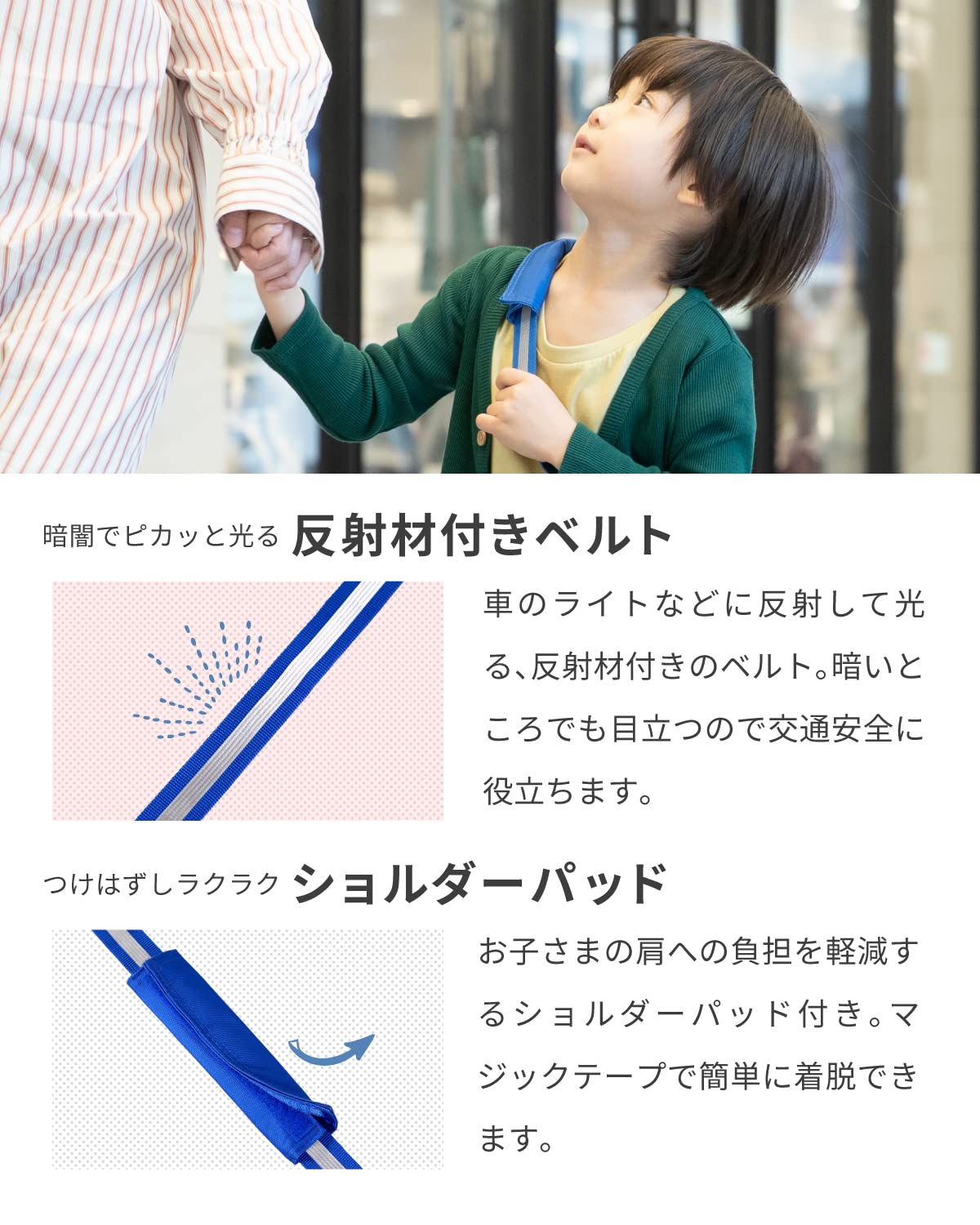 ショルダーベルトには肩パッドが付いているので、肩への負担が軽減。 ●帰宅時間の安全を考慮して、ショルダーベルトには反射素材を使用。 ●胴部口径は広口の約6.7cmで、飲みものや氷が入れやすく、しかもお手入れがしやすい。