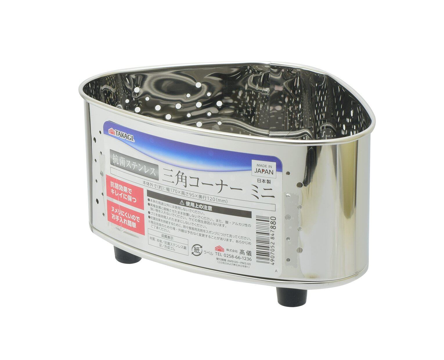 日本製 抗菌 高儀 TAKAGI 抗菌ステンレスミニ三角コーナー シルバー