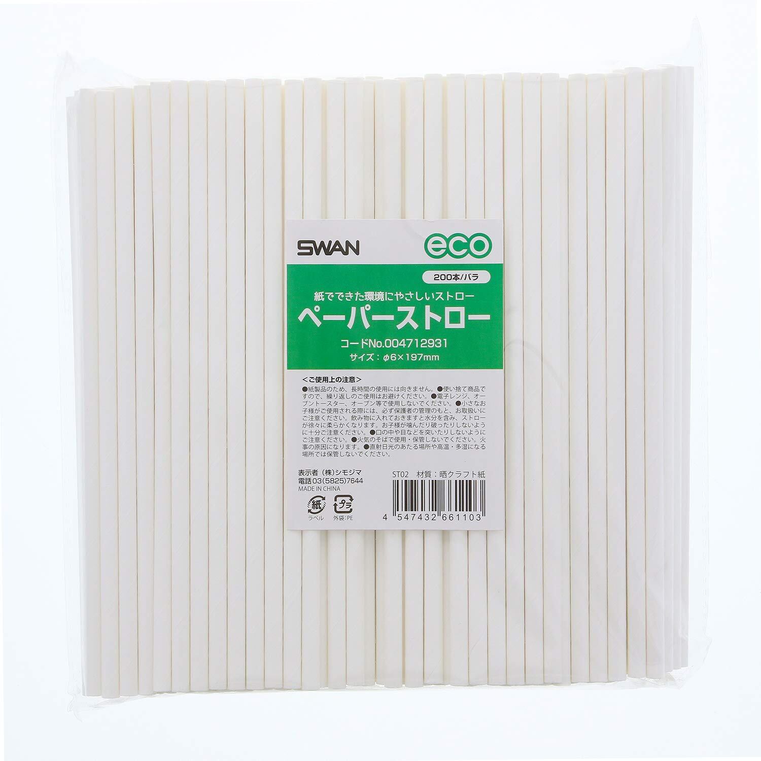 シモジマ スワン ストロー ペーパーストロー 白 裸 200本入 004712931