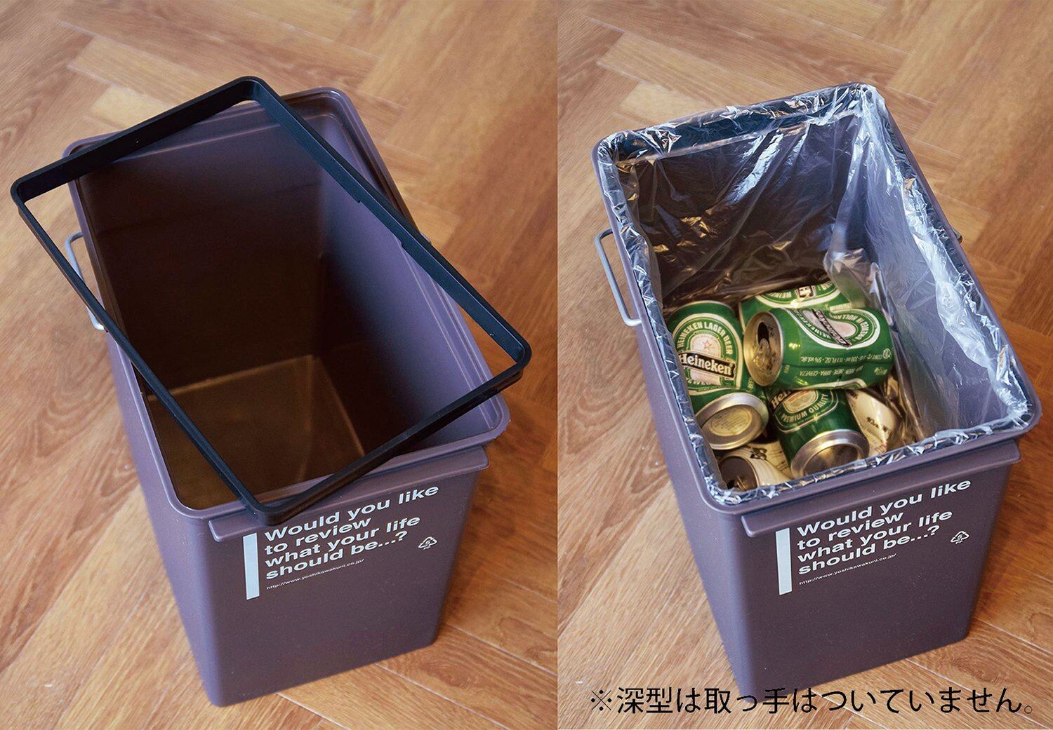 細身で縦長の形状は分別用にいくつか並べたくなる。(スタッキング可能)