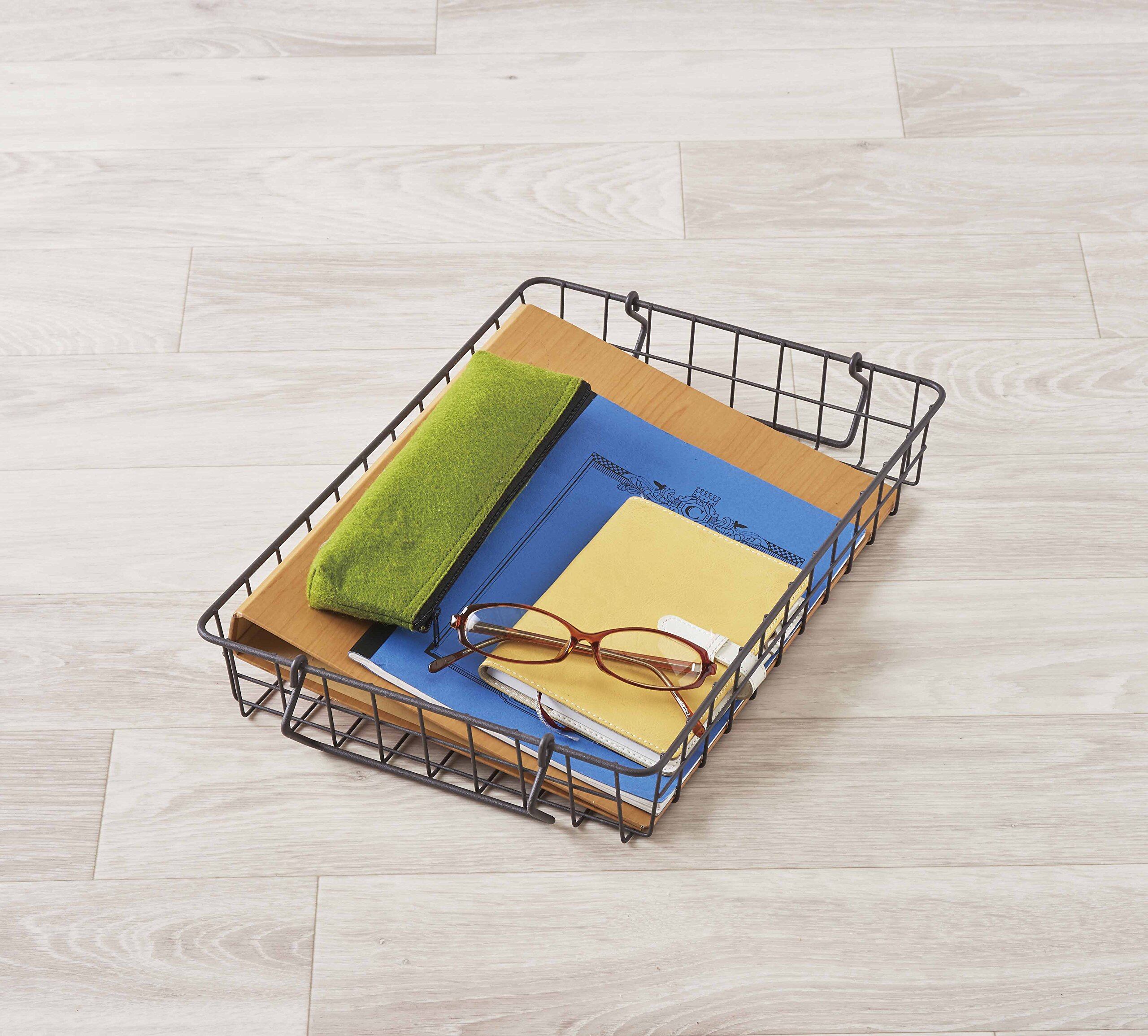 持ち手がついているので持ち運びがしやすく、持ち手を内側にすれば、スタッキングできるバスケットです