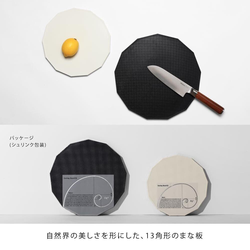 四角でも、丸でもない、"13角形"だから使いやすい、抗菌Ag+配合のバイカラーまな板。