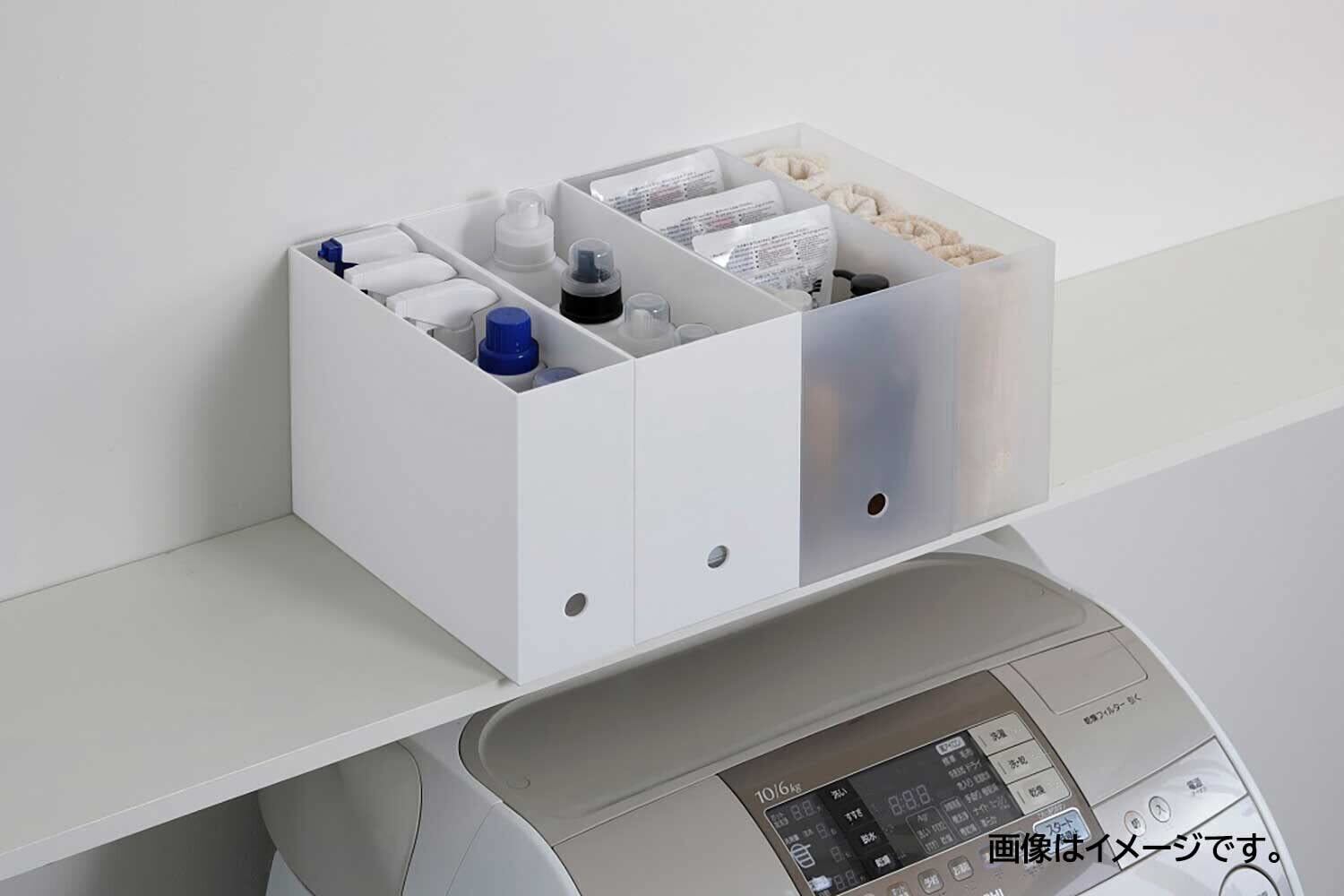 使い方次第で家中整理整頓できる。ファイルボックス。【スリム・ワイドタイプ】 A3サイズまでの書類が入るファイルボックス。丸い穴が空いているので指を引っかければボックスを引き出すことができ、高い場所に置いてあるファイルボックスでも簡単に取り出すことができます。