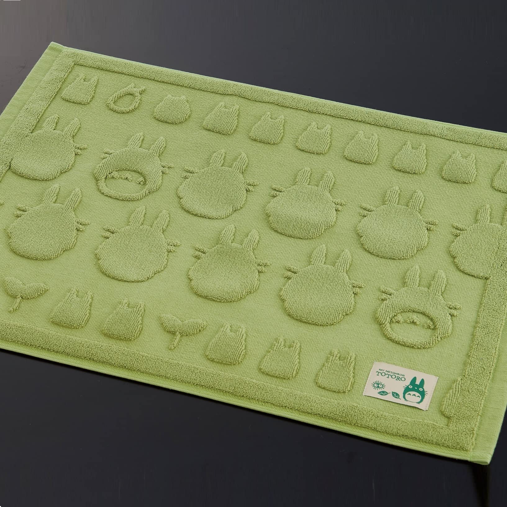 トトロのシルエットを凹凸で表現したコットン100%のタオル地マット。コンパクトに折りたためて洗濯や収納が簡単。