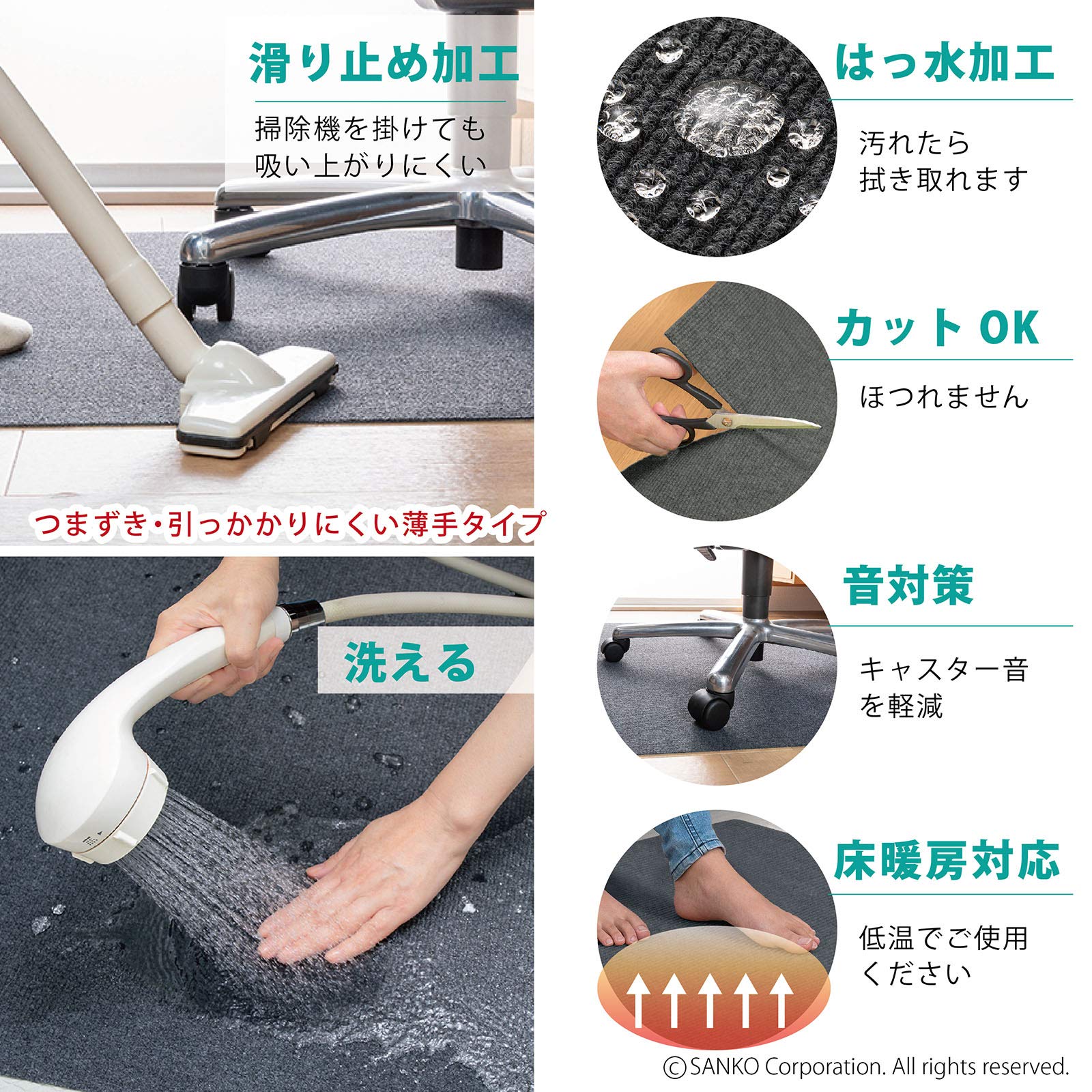 サンコー ゲーミングチェアマット ずれない 滑り止め 洗える 床 畳 デスク 床保護 ダークグレー 90×120cm おくだけピタッ KX-40 日本製