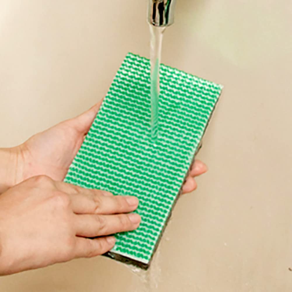 【水で濡らしてこするだけ !】ダブル繊維がタイルの表面やコンクリート外壁などの表面の凹凸に入り込んで汚れをかき出します。