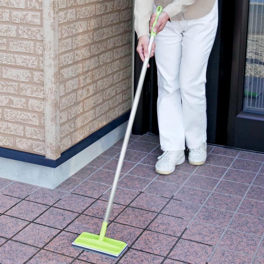 【腰を曲げずにラクラクお掃除】柄付きなので、腰に負担をかけずにラクな姿勢でお掃除できます。