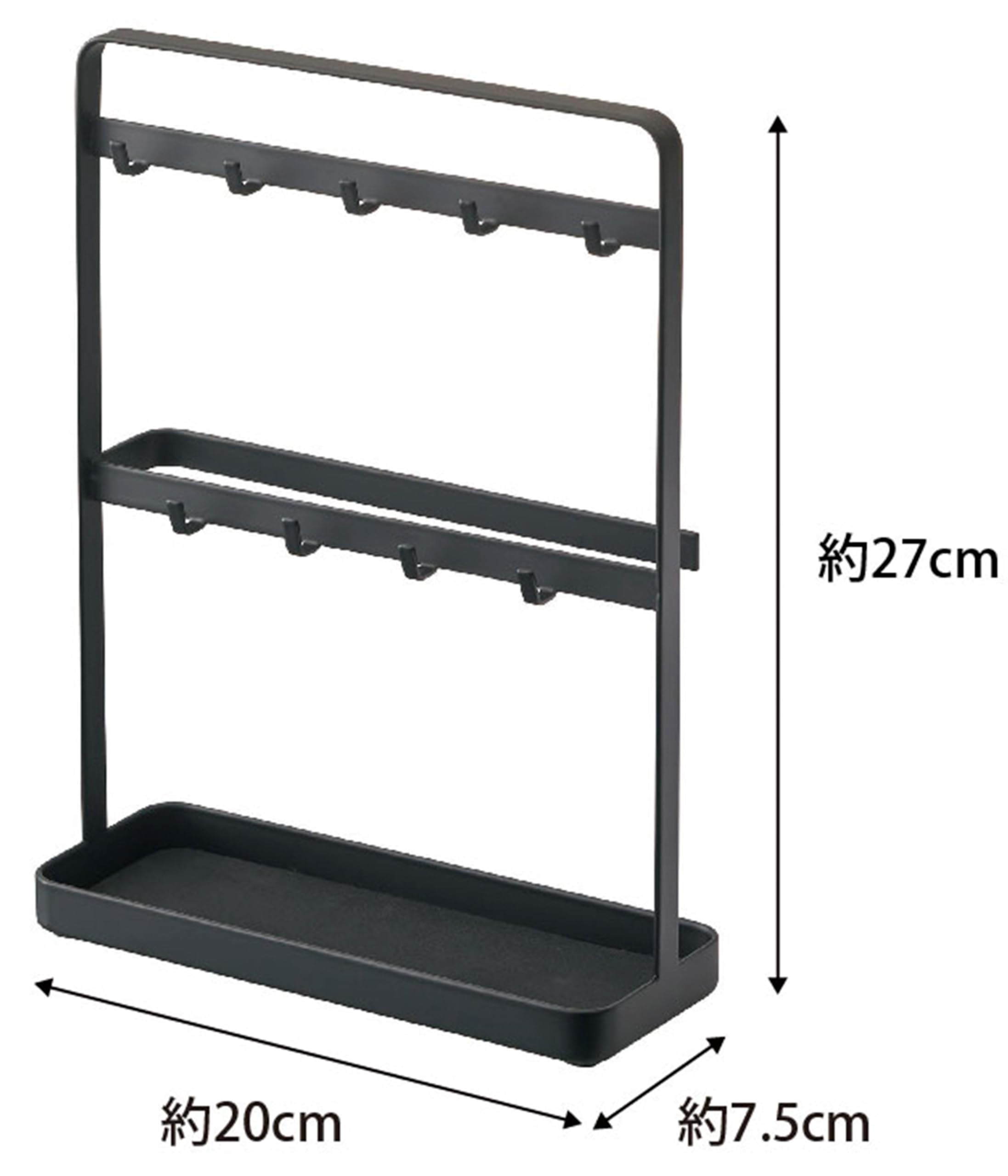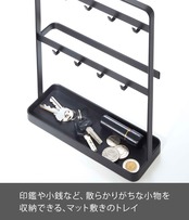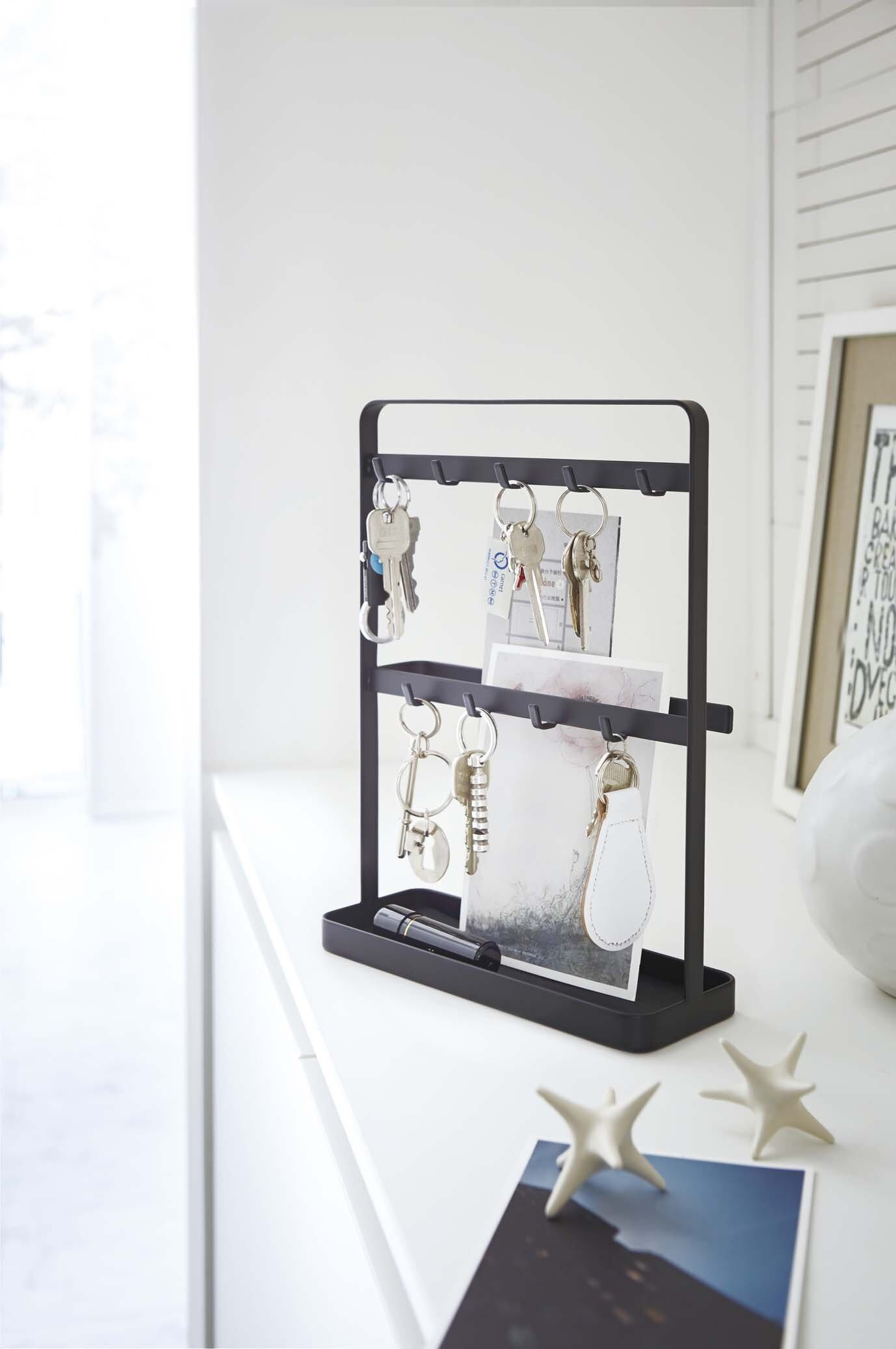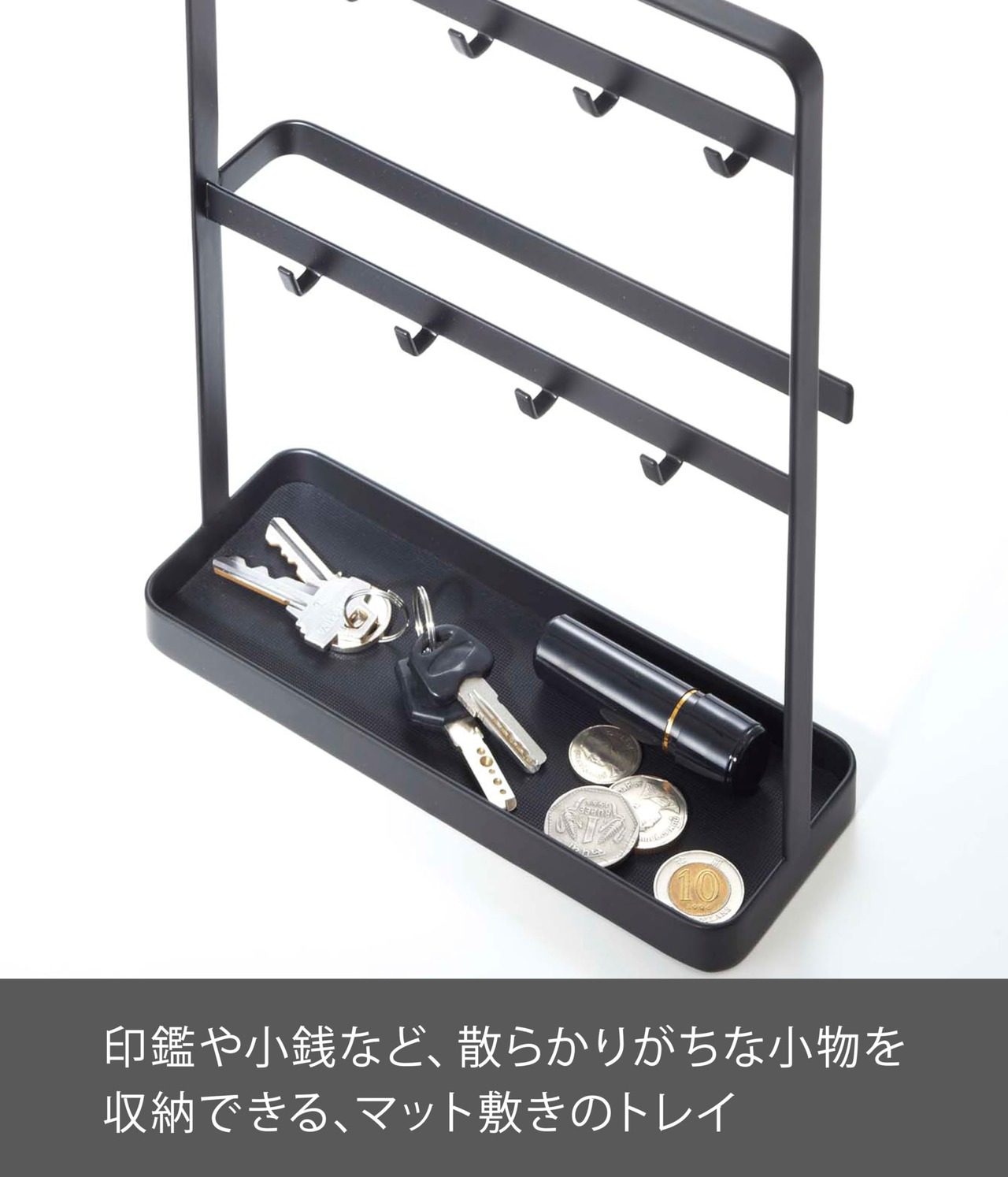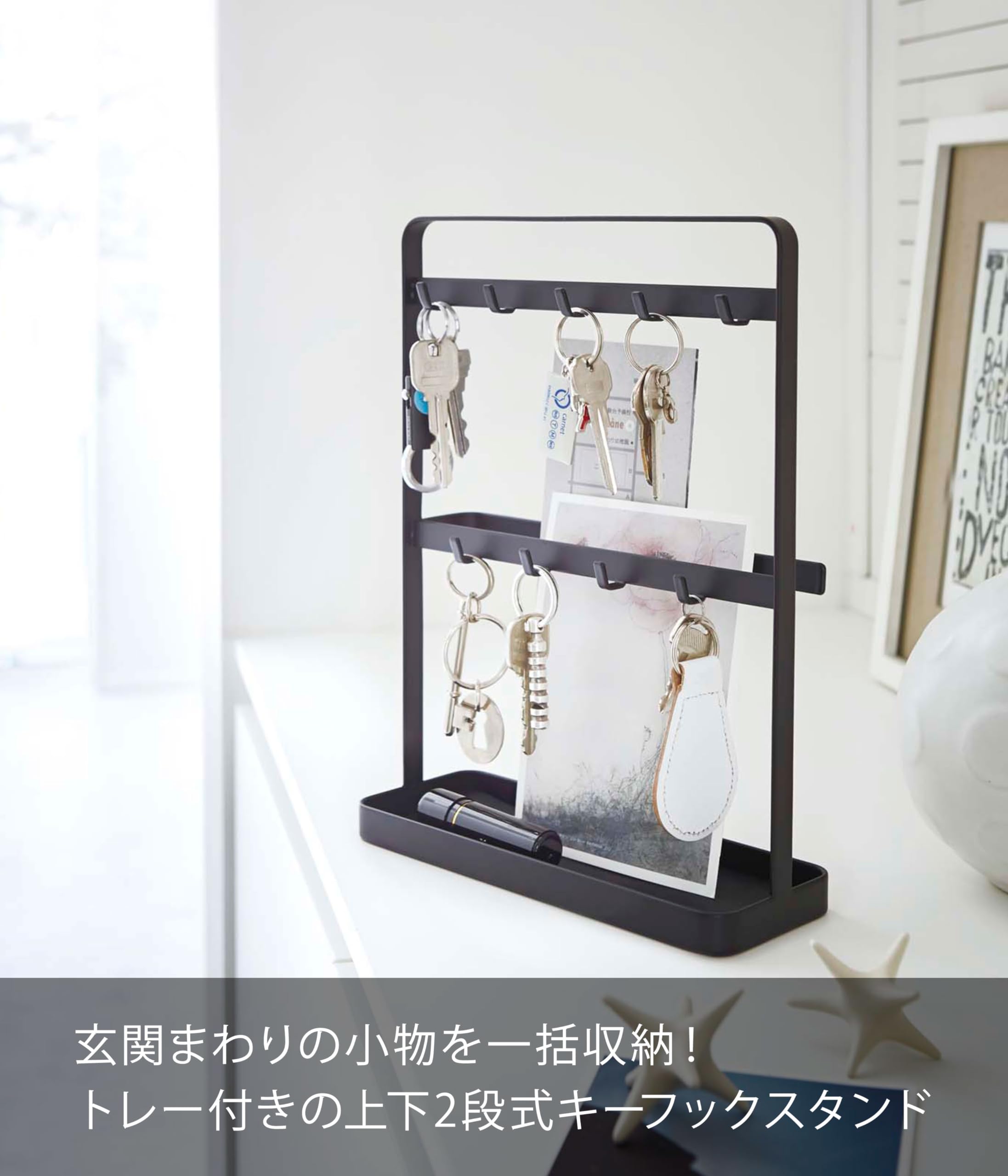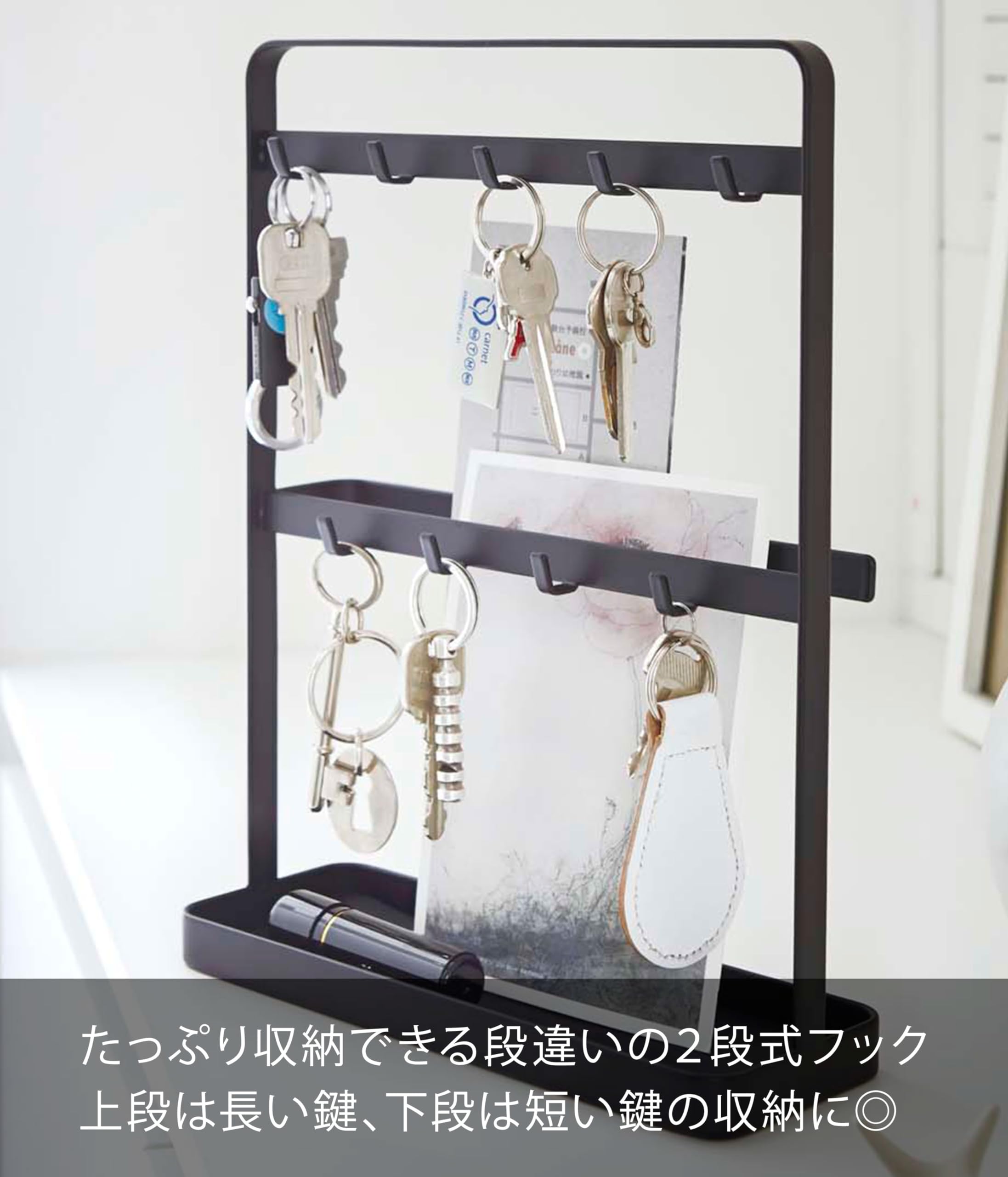 はがきや印鑑なども収納出来る便利なトレイ付きで上下2段式のキーフックスタンド。スリムでシンプルなデザインだから玄関やリビングなど、置き場所に困りません。