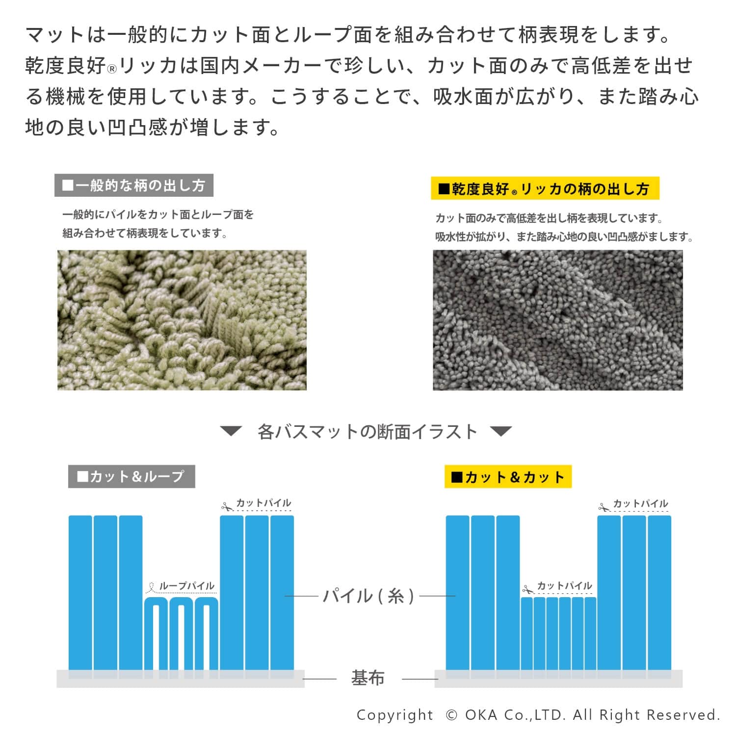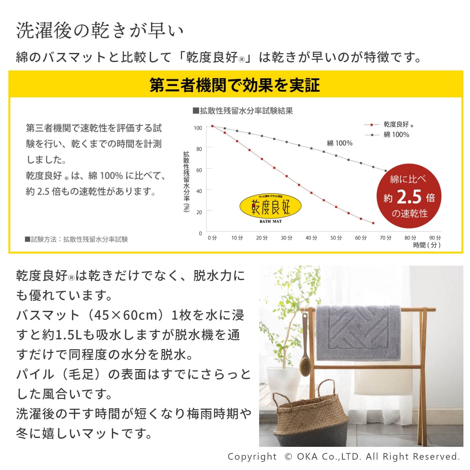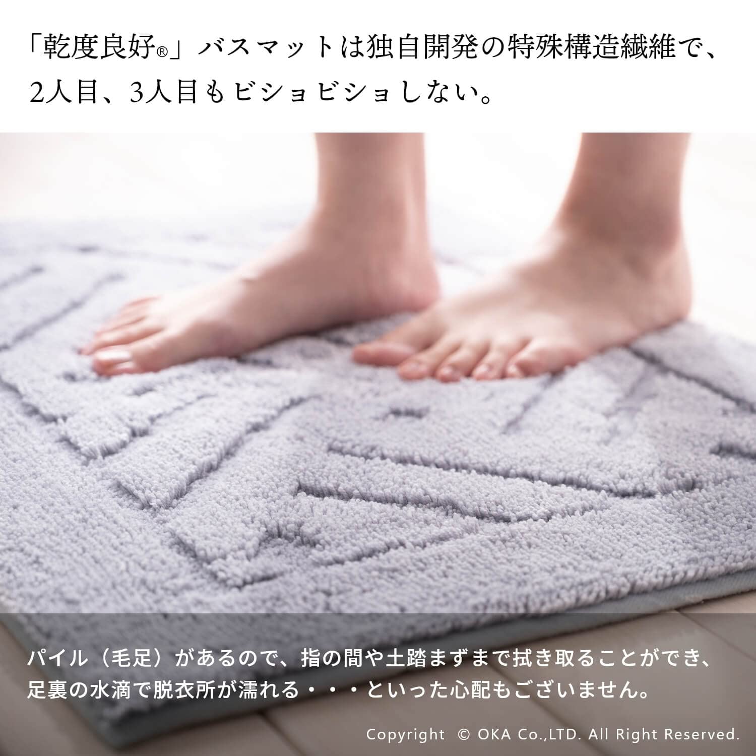 【最新商品】オカ(OKA) 乾度良好リッカ バスマット 約50cm×70cm グレー (吸水 速乾 洗える 大判 かんどーくん)