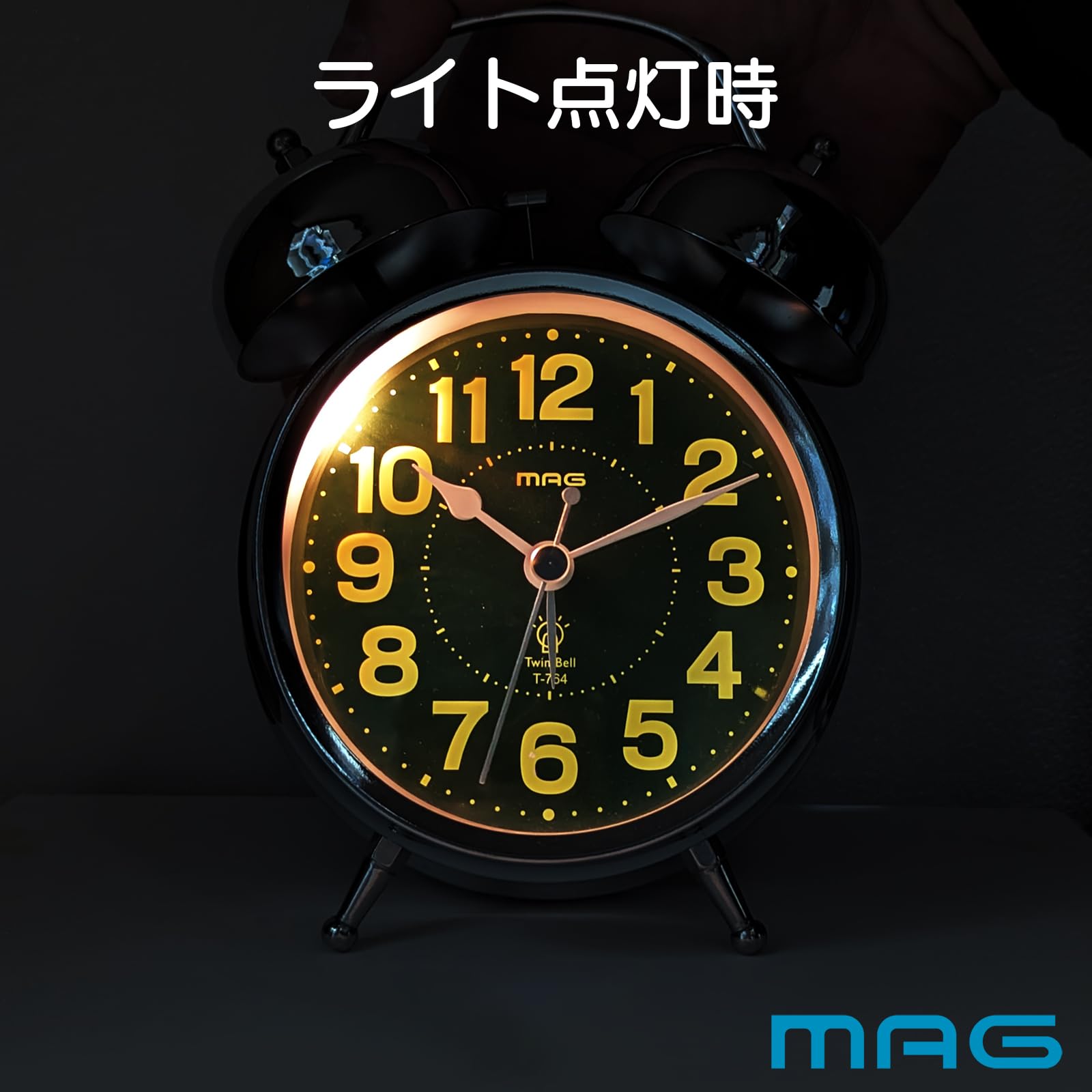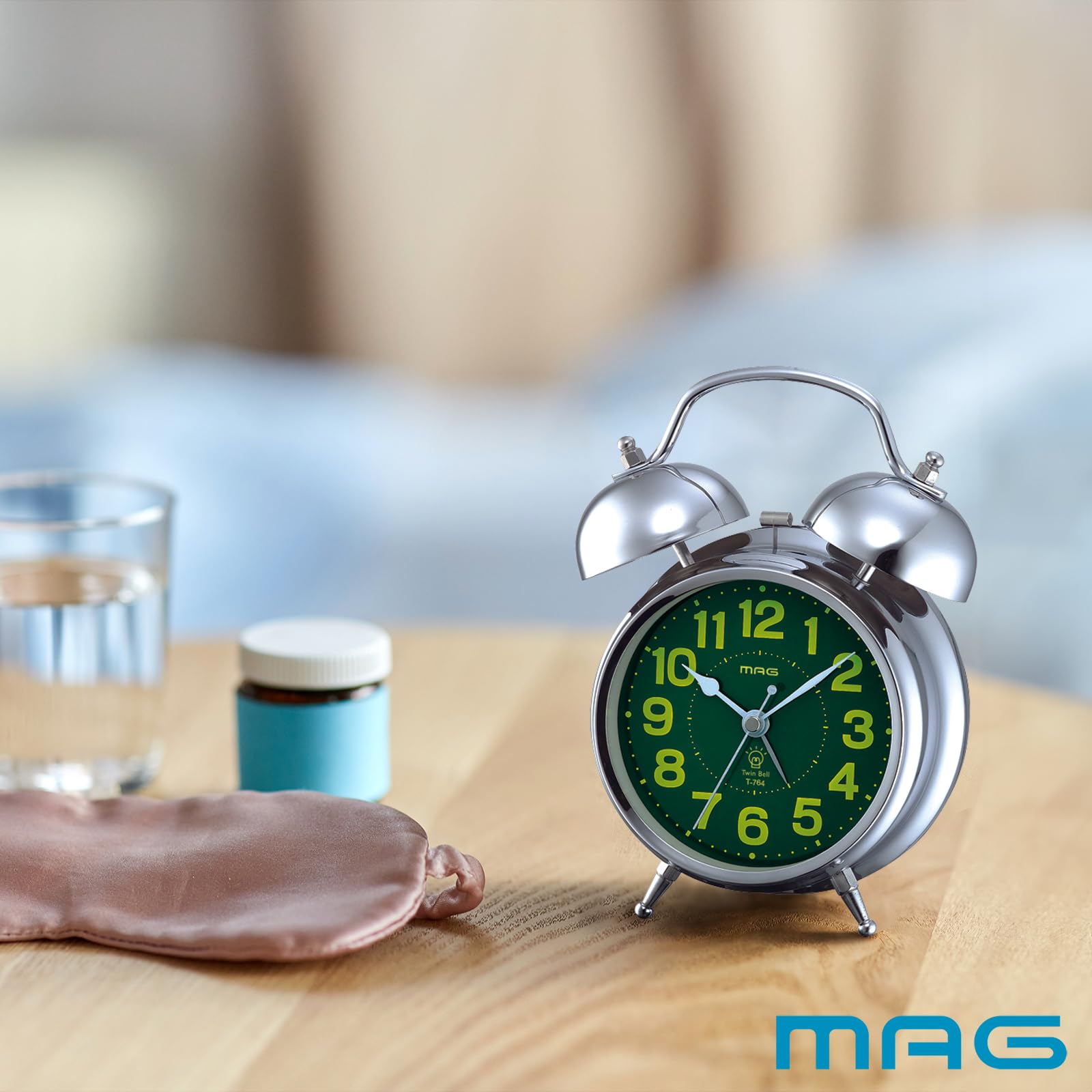 MAG(マグ) 目覚まし時計 置き時計 大音量 ツインベル アナログ 見やすい 静音 連続秒針 ベル音 アラーム スヌーズ ライト シルバー ベルズDX T-764 S-Z ノア精密