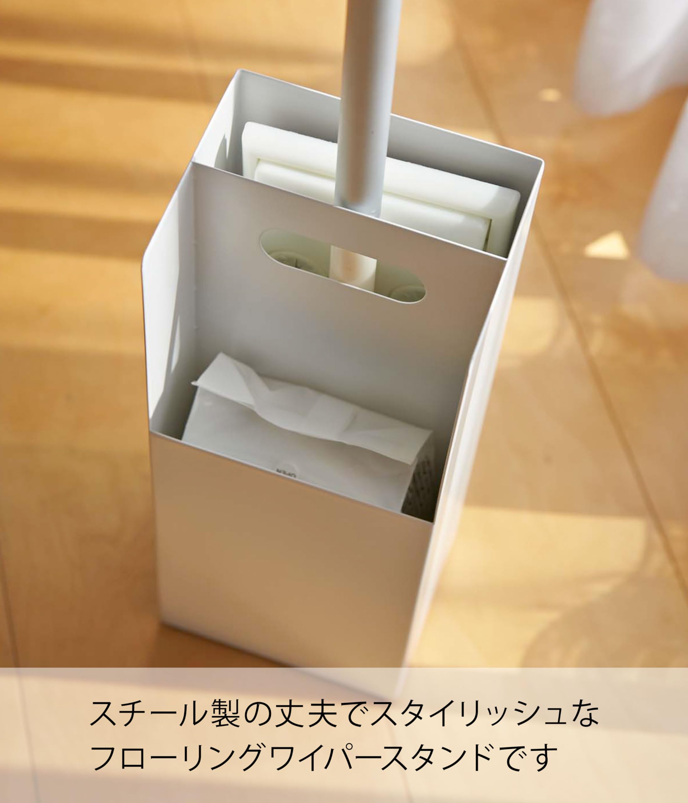山崎実業(Yamazaki) フローリングワイパースタンド ホワイト 約W11×D9×H26cm プレート Plate 詰替シート収納 スリムに立てて収納 7860