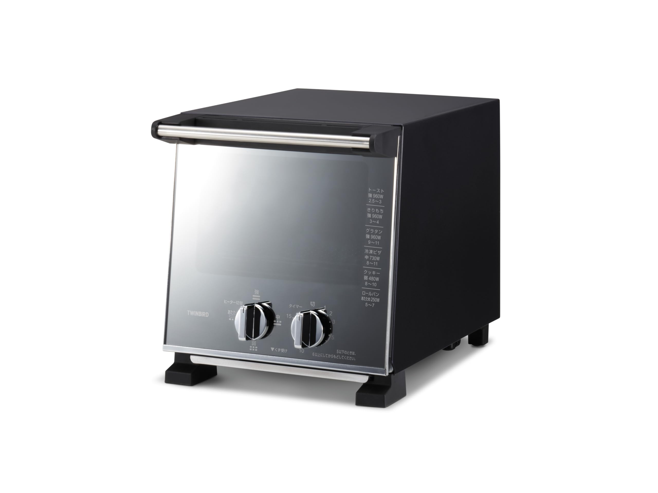 ツインバード トースター オーブントースター 2枚焼き 960W 4段階切替 コンパクト ミラーデザイン 黒 ブラック TS-D037PB