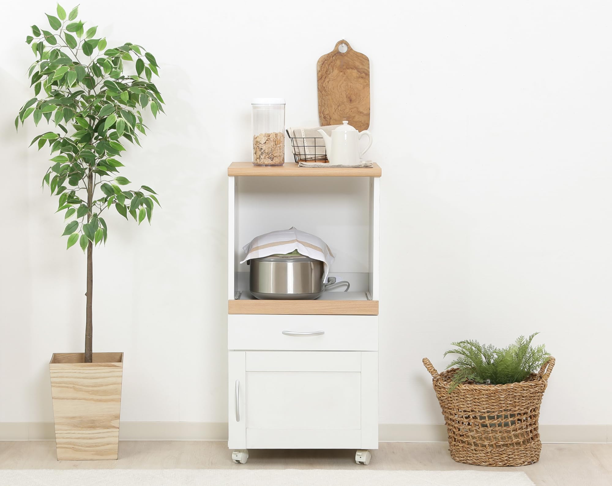 不二貿易 キッチン収納 キッチンカウンター 幅45×奥行39.5×高さ89cm ホワイト スライド棚 コンセント付き コンパクト サージュ 99520