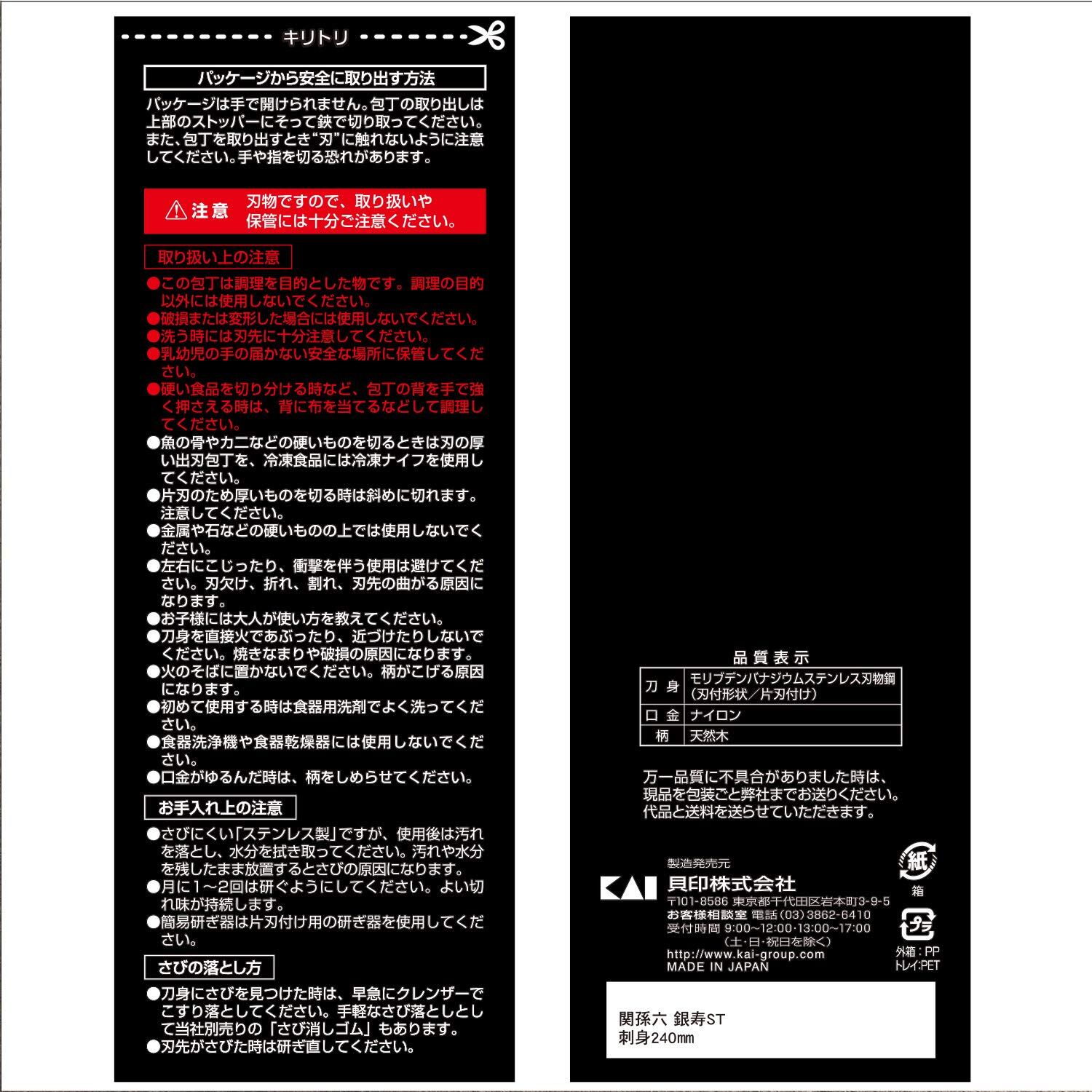 貝印 KAI 刺身包丁 関孫六 銀寿 ステンレス 240mm 日本製 お手入れ簡単 AK5068