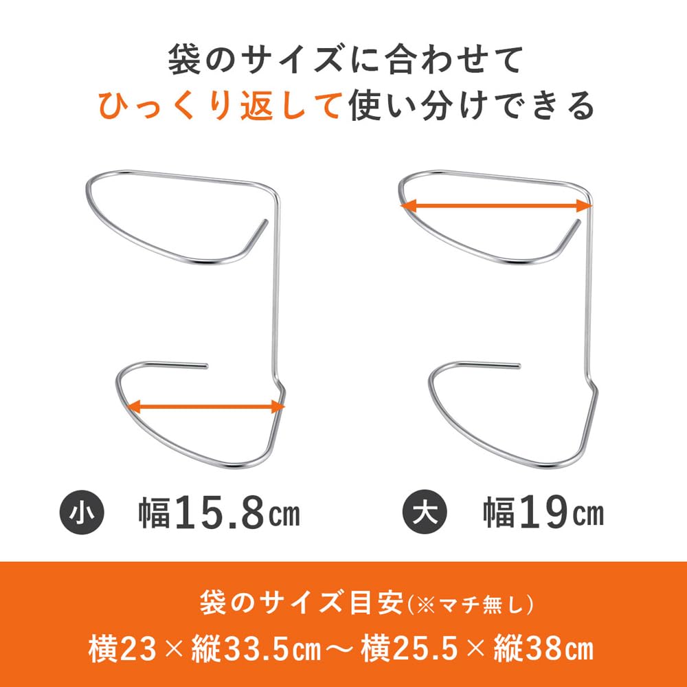 上下ひっくり返せば、大・小2サイズの袋が使える