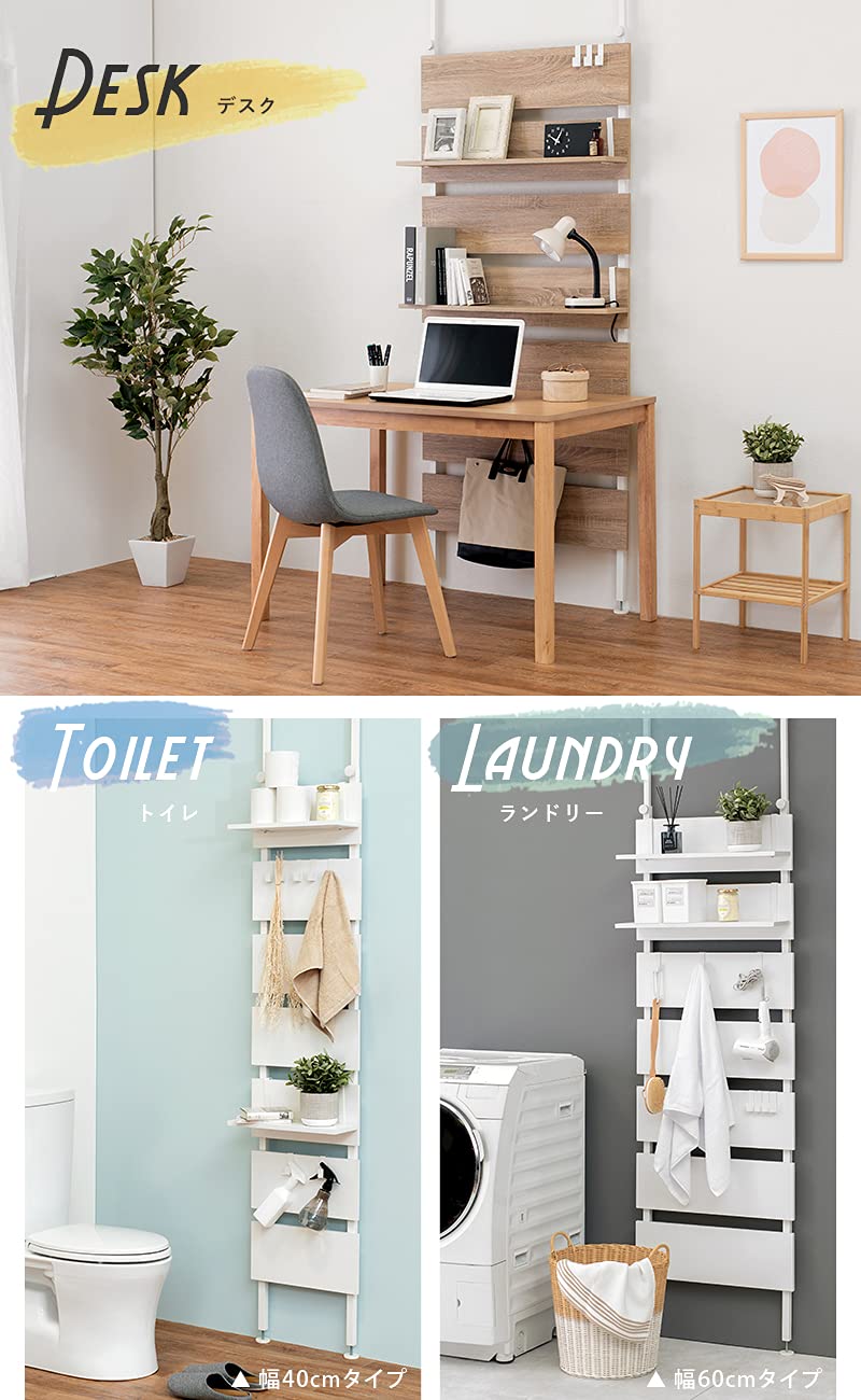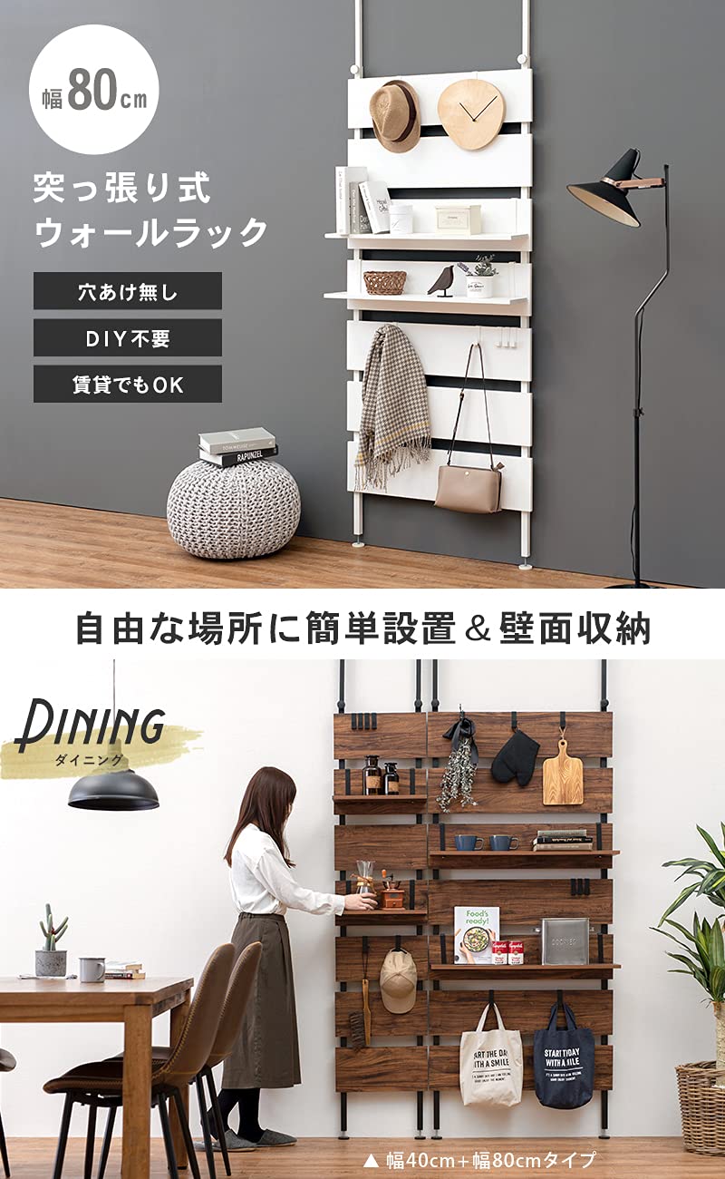 萩原(Hagihara) 突っ張り ラック つっぱり 棚 壁面収納 ウォールラック 【DIY・穴あけ・工事が不要】簡単取付 段差対応 木目調 幅80 スリム ホワイト KTR-3148WH