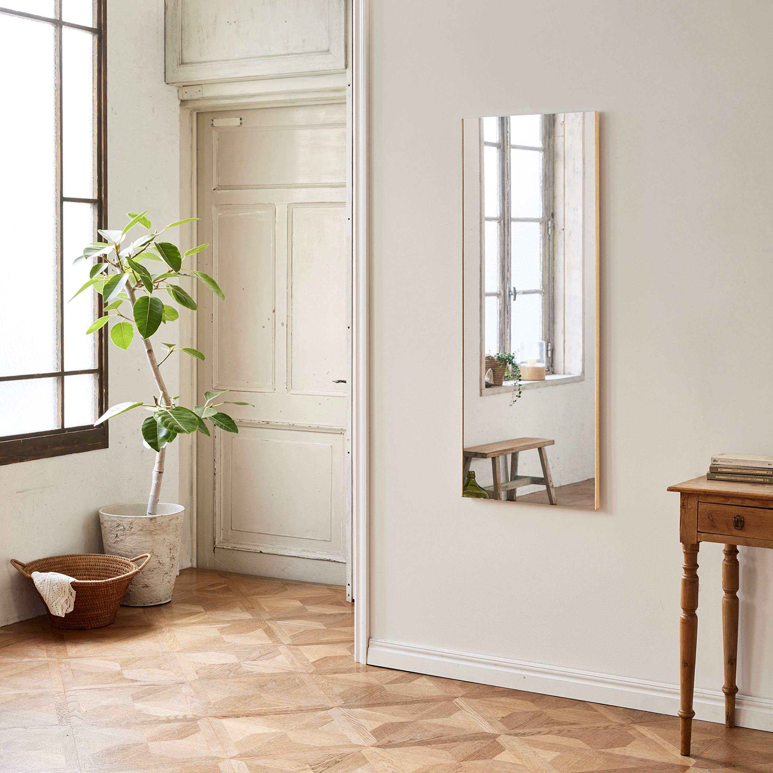 リフェクス割れない軽量ミラー幅45×高さ120cmメープル(木目)フレームRM-2/MM【日本製】