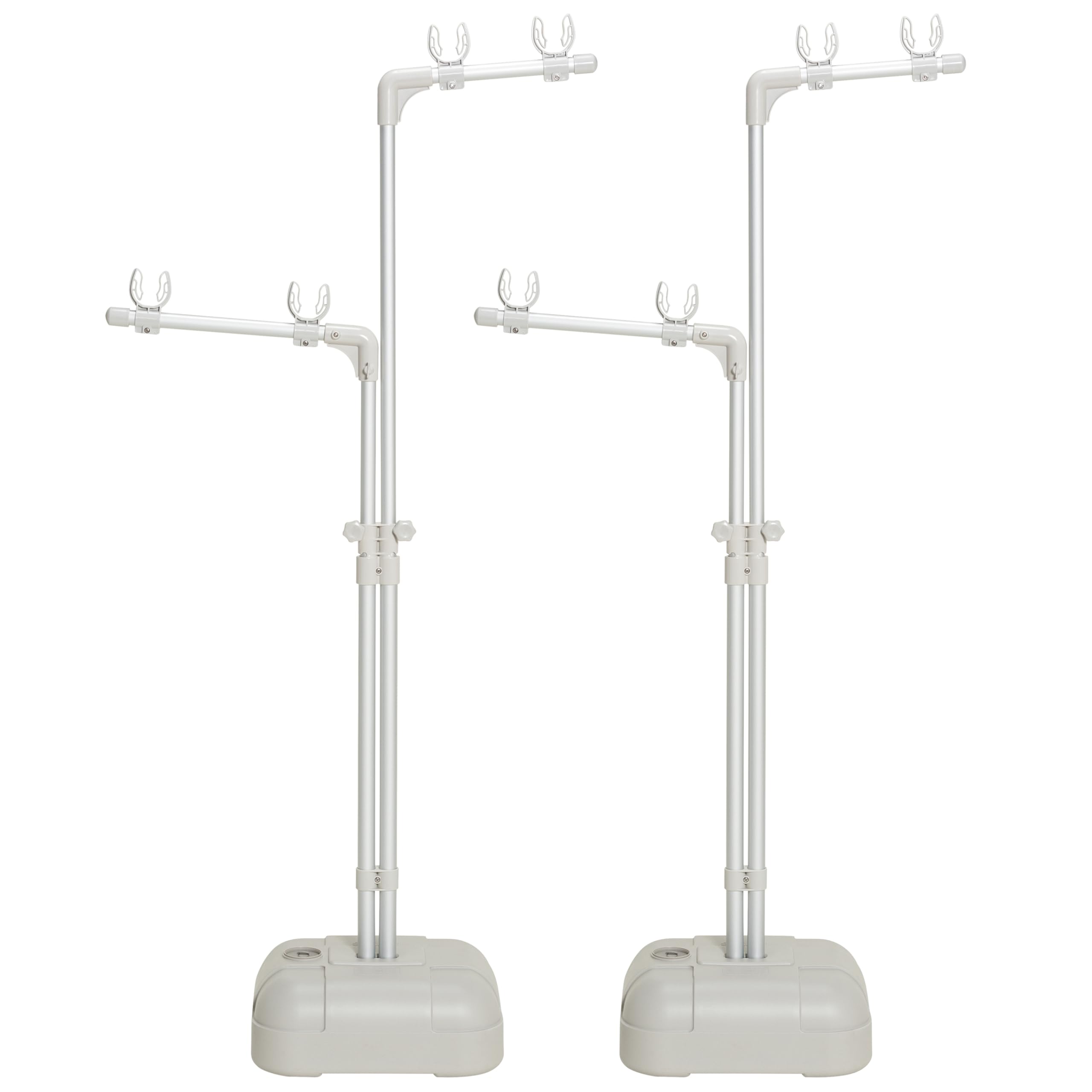 安定性の良いブロー台付き・軽くてサビにくいアルミ製物干台。ブロー台1個辺り満タン重量水のみ約16㎏、砂のみ約22㎏、水+砂 約28㎏、耐荷重約30㎏、竿かけ数4本 (材質)パイプ:アルミパイプ、成型部品:ABS樹脂、PP樹脂、ブロー台:ポリエチレン樹脂、ネジ類:ステンレス・スチ-ル(メッキ)・ABS樹脂、竿は別売り