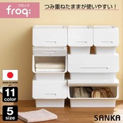 サンカ フロック 重ねて使える蓋付き衣装ケース スリム ホワイト おしゃれな大容量収納 引き出さずに使える前面開閉式 カパっとひらく固定できるフタ キャスター取り付け可能 日本製 衣類 収納ボックス (幅28.5×奥行46×高さ31cm) froq fr-S30NWH/WH