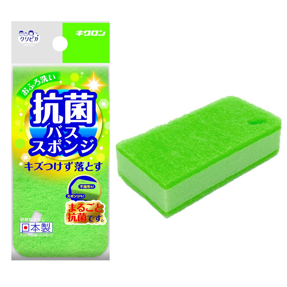キクロン バススポンジ 抗菌 グリーン 1個入 スポンジも不織布も両面まるごと抗菌加工 洗いやすいリーフ形状 日本製 クリピカ