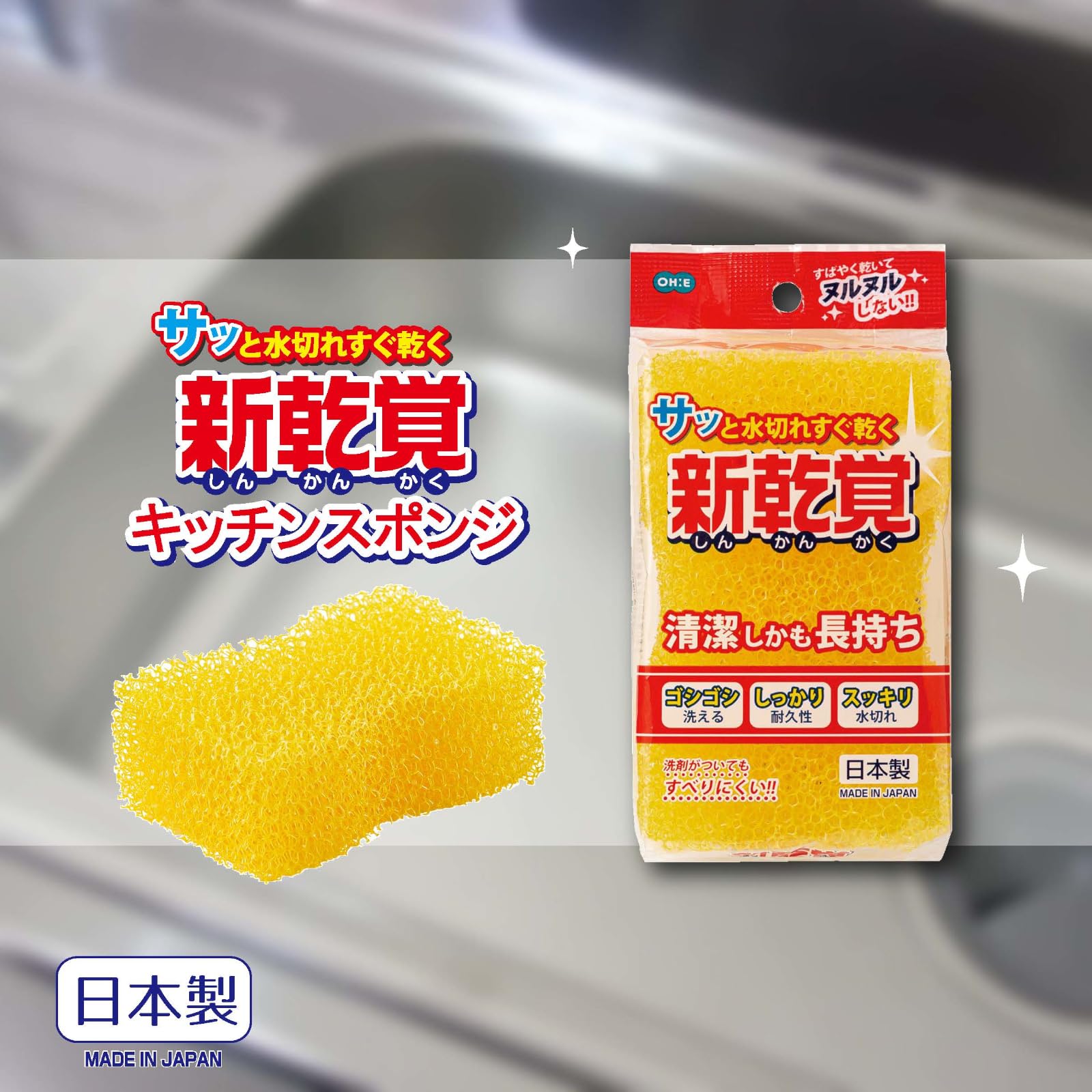 オーエ スポンジ イエロー 約縦11.5×横7.3×奥行4cm 新乾覚 キッチン用 水切れ 日本製