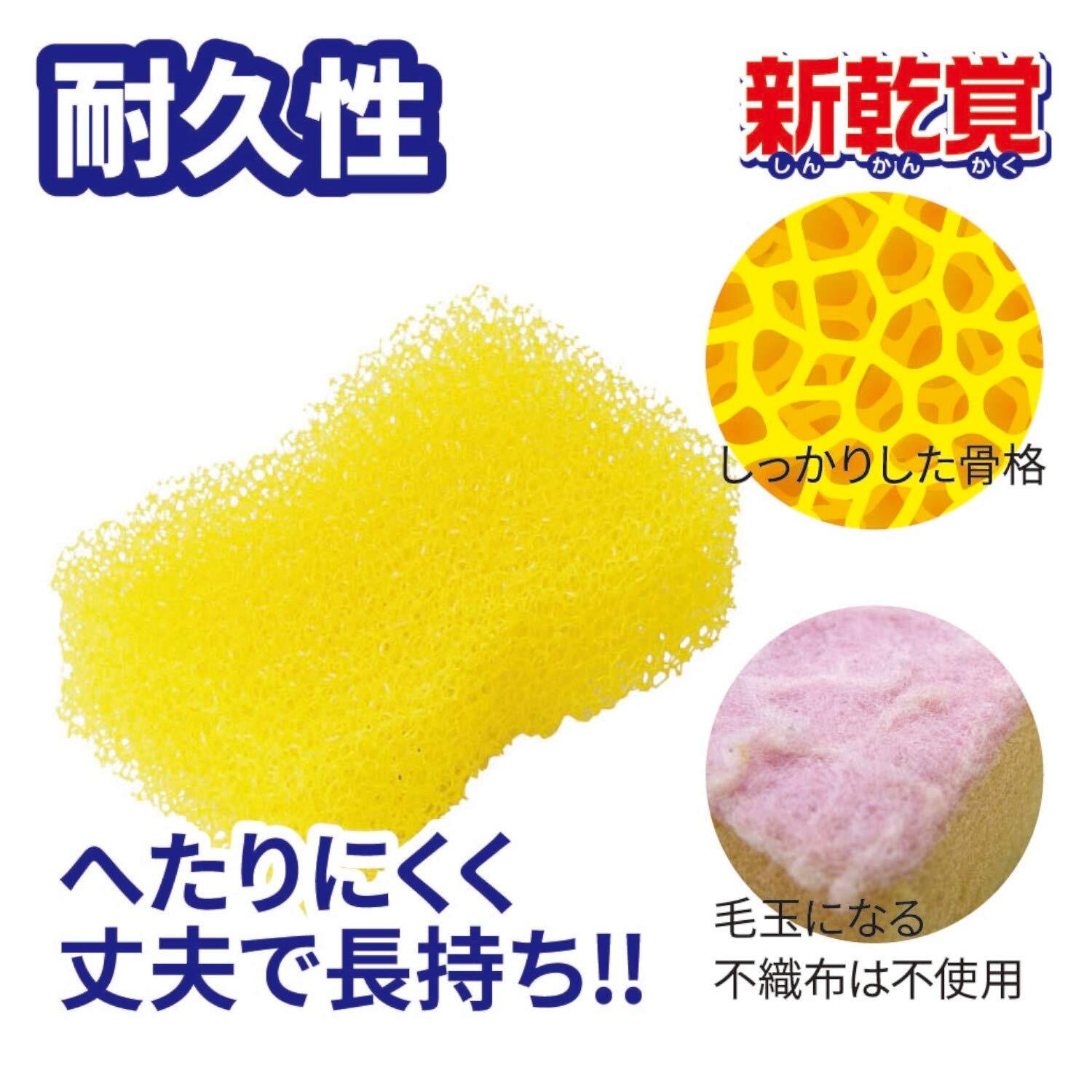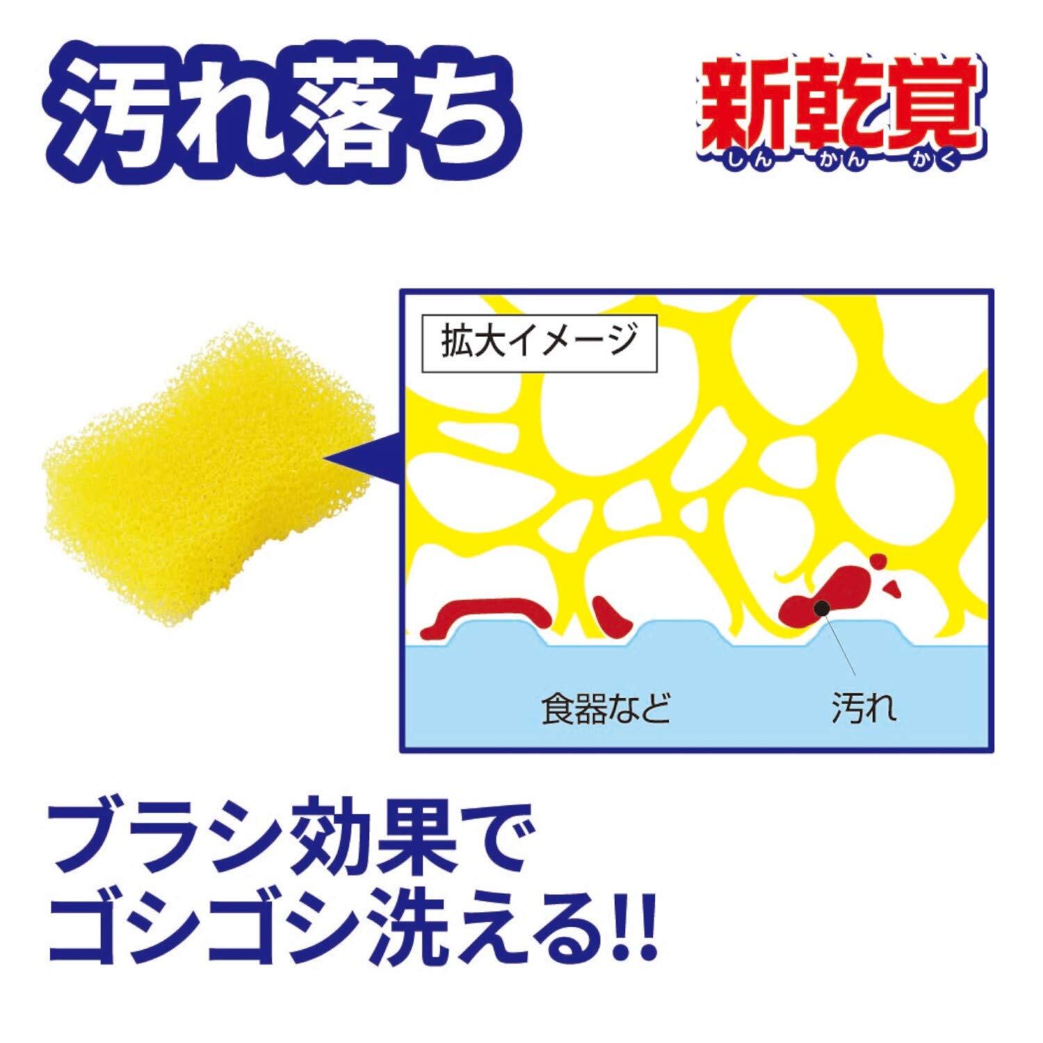 ●「新乾覚 キッチン用スポンジ」は、目の粗いフィルタースポンジなので、洗剤をつけて洗うとよく泡が立ち、しっかりと汚れを落とすことができます。