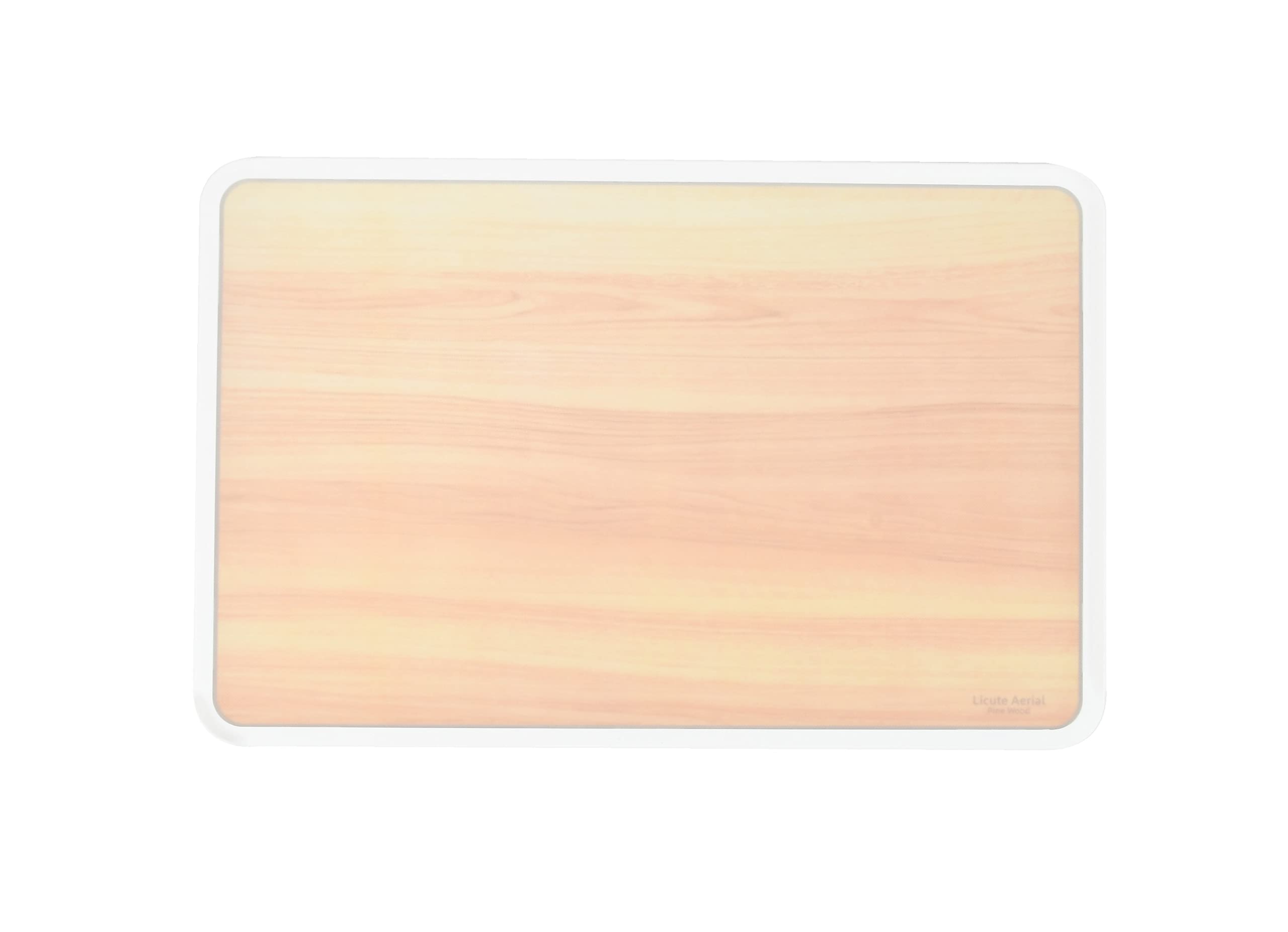 Licute Aerial まな板 パインウッド(Pine Wood) 製品サイズ(約) : 縦210×横325×厚さ9mm 製品重量(約) : 310g 耐熱温度 : 90℃ 本体 : ポリプロピレン 縁部 : エラストマー その他の材料 : 紙 生産国 : 日本
