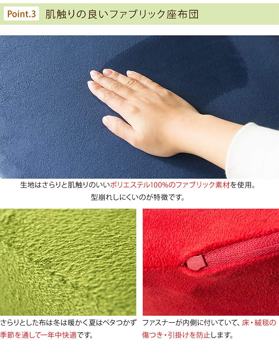 分厚く存在感のある座布団は、低反発ウレタンを使用した15cmの極厚クッション。腰をしっかりと支えてくれて、へたりにくく、長くお使いいただけます。