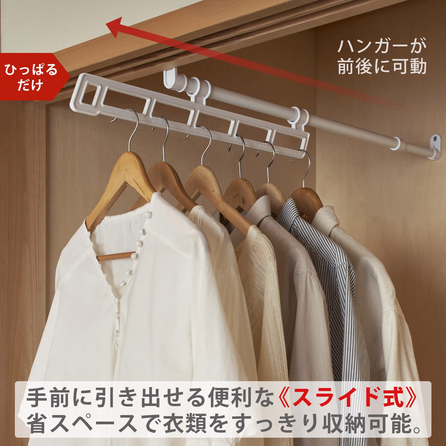 スライド式のため奥の洋服も楽に取り出せる。