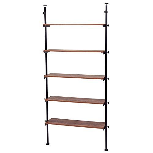 萩原(Hagihara) オープンシェルフ ラック 突っ張り 【木目調棚】 5段 幅90 無段階調節 ブラウン×ブラック KTR-3156BR