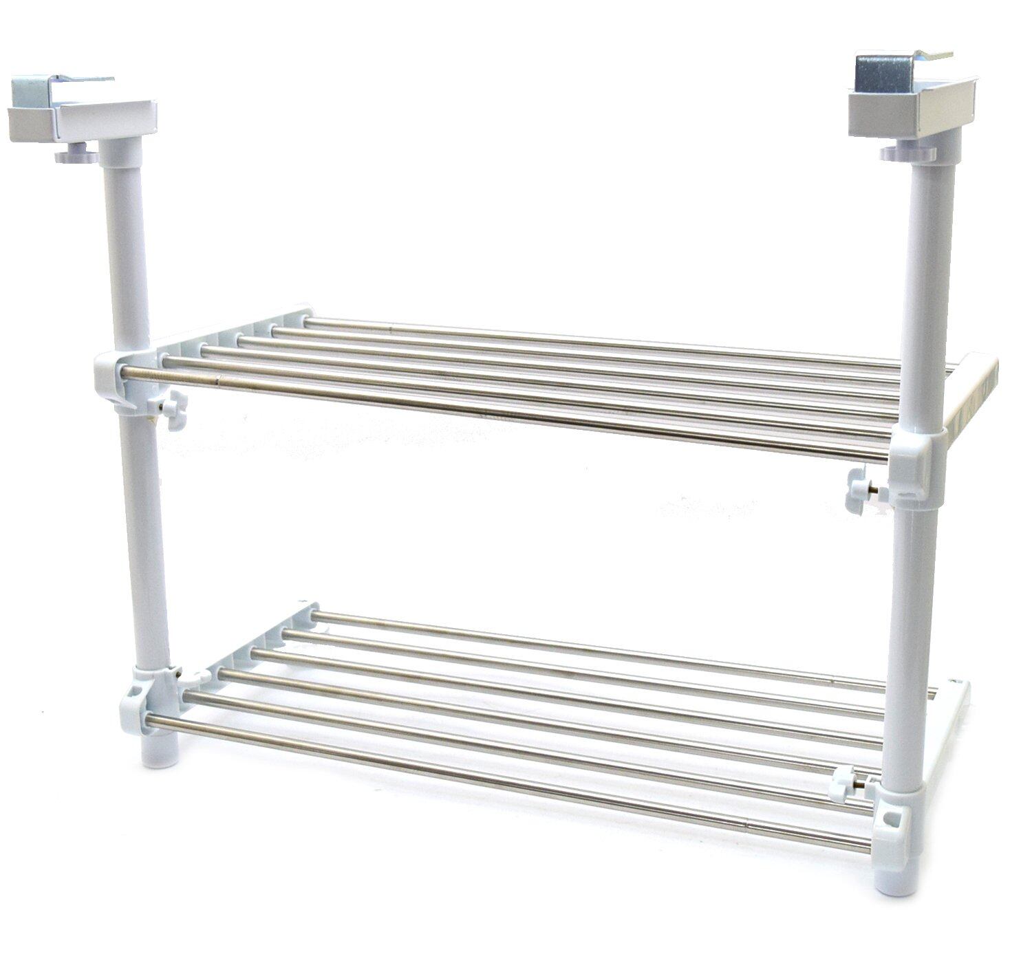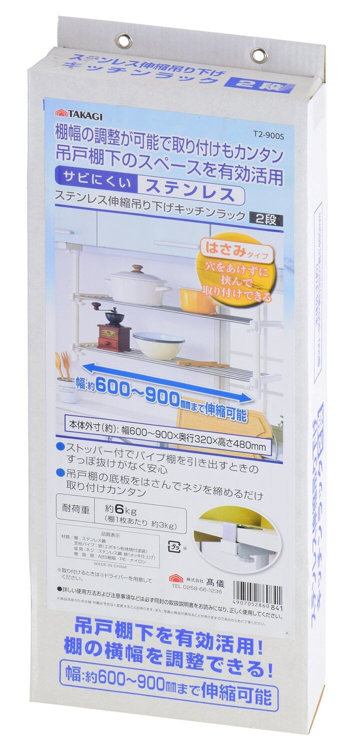 高儀 TAKAGI ステンレス 伸縮吊り下げ キッチンラック 2段 棚 幅調整可能 シルバー つりさげ 穴あけ不要 挟みこみ キッチン置き棚 収納棚 キッチン収納 錆びにくい 耐荷重6kg