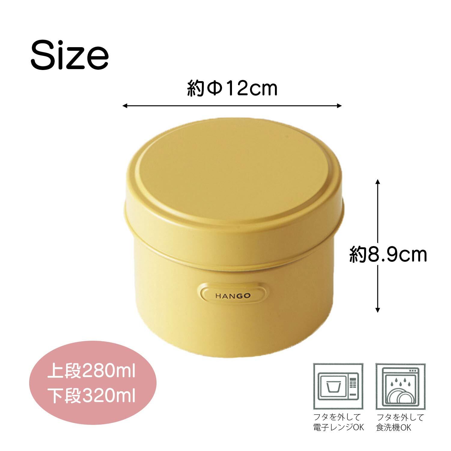 竹中 ランチボックス HANGO LUNCH ラウンド 電子レンジ対応 イエロー 上段280ml 下段320ml T-96440