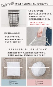 【約33Lの縦型バスケット】水や汚れに強い2杯の大容量バスケットは、洗濯物の分別に最適。