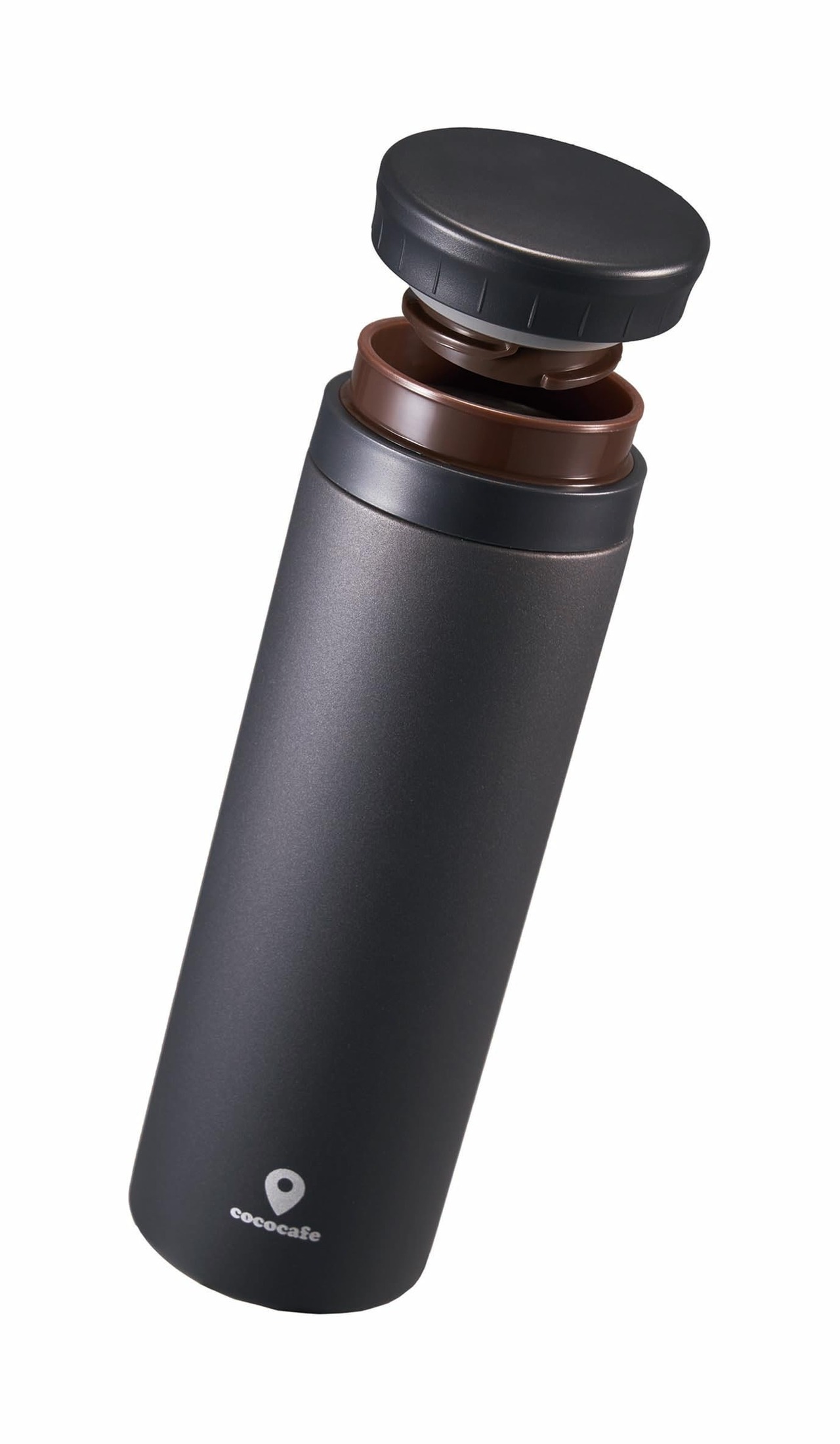 【COC CAFE】ココカフェ ホッとひと休み。ここがいつものカフェになる。 <商品特徴> ◎開けるも閉めるもクイッとカンタン半回転(140°)。 ◎リブがあるので手にかかって取り出しやすい。 ◎グッと掴んでしっかり回せる開けやすいフタ形状。 キズや剥げに強く、指紋が付きにくいパウダーコート。サラサラ触感。 ◎氷ストッパー付き。熱い飲み物の飛び出し防止にも! <商品仕様> 保温効力:66℃以上、保冷効力:9℃以下(6時間) ●商品サイズ:直径70×217mm(満水:540ml) ●重量:260g ●素材:内ビン/ステンレス鋼(クロム18%・ニッケル8%)、胴部/ステンレス鋼(粉体塗装)、フタ栓・中栓/ポリプロピレン、パッキン/シリコーンゴム