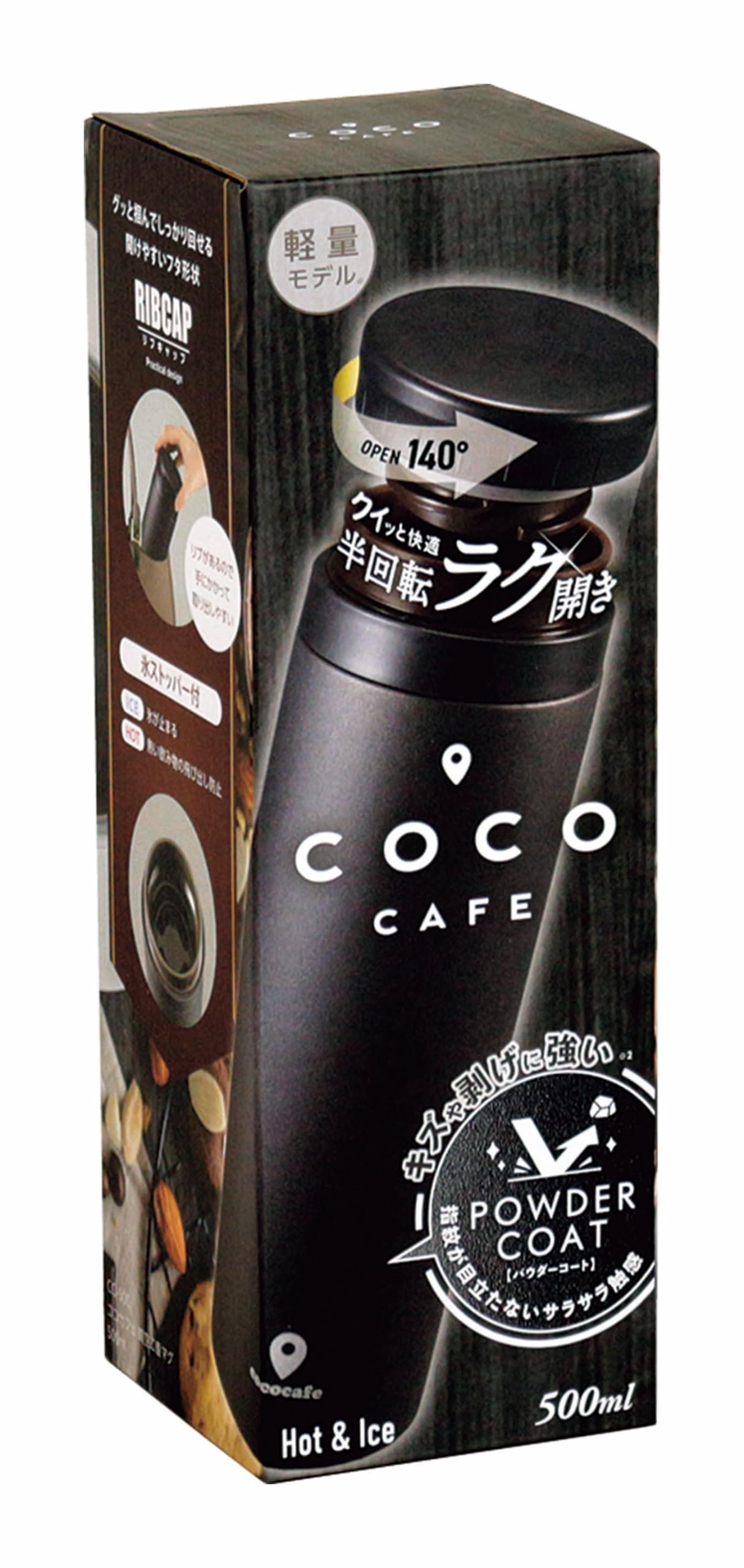 カクセー マグボトル 水筒 チャコール 500ml 真空二重構造 保温 保冷 開けやすい リブキャップ 氷ストッパー付き ココカフェ CC-50C