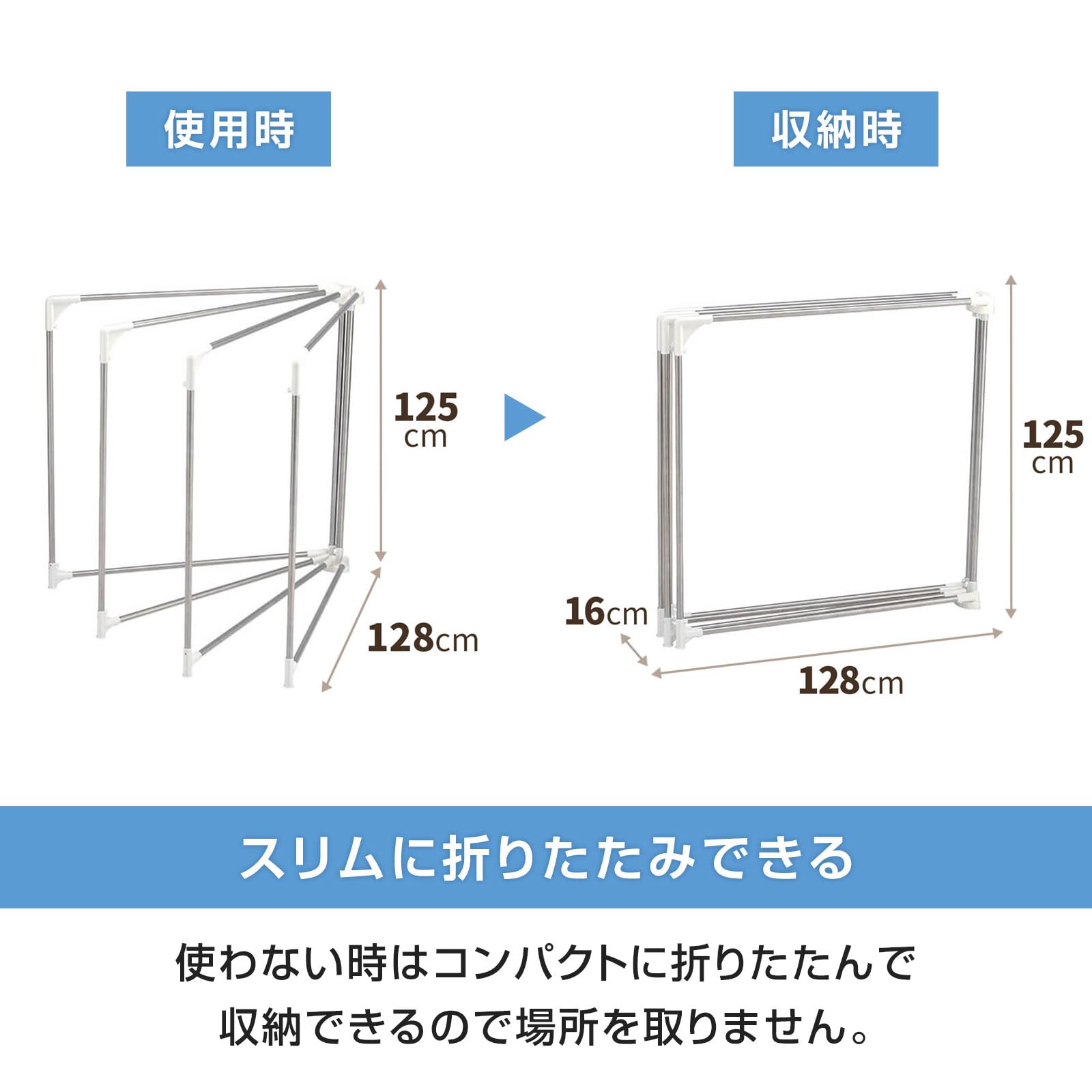 使用しない時はスリムに折りたためるので、コンパクトに収納可能。