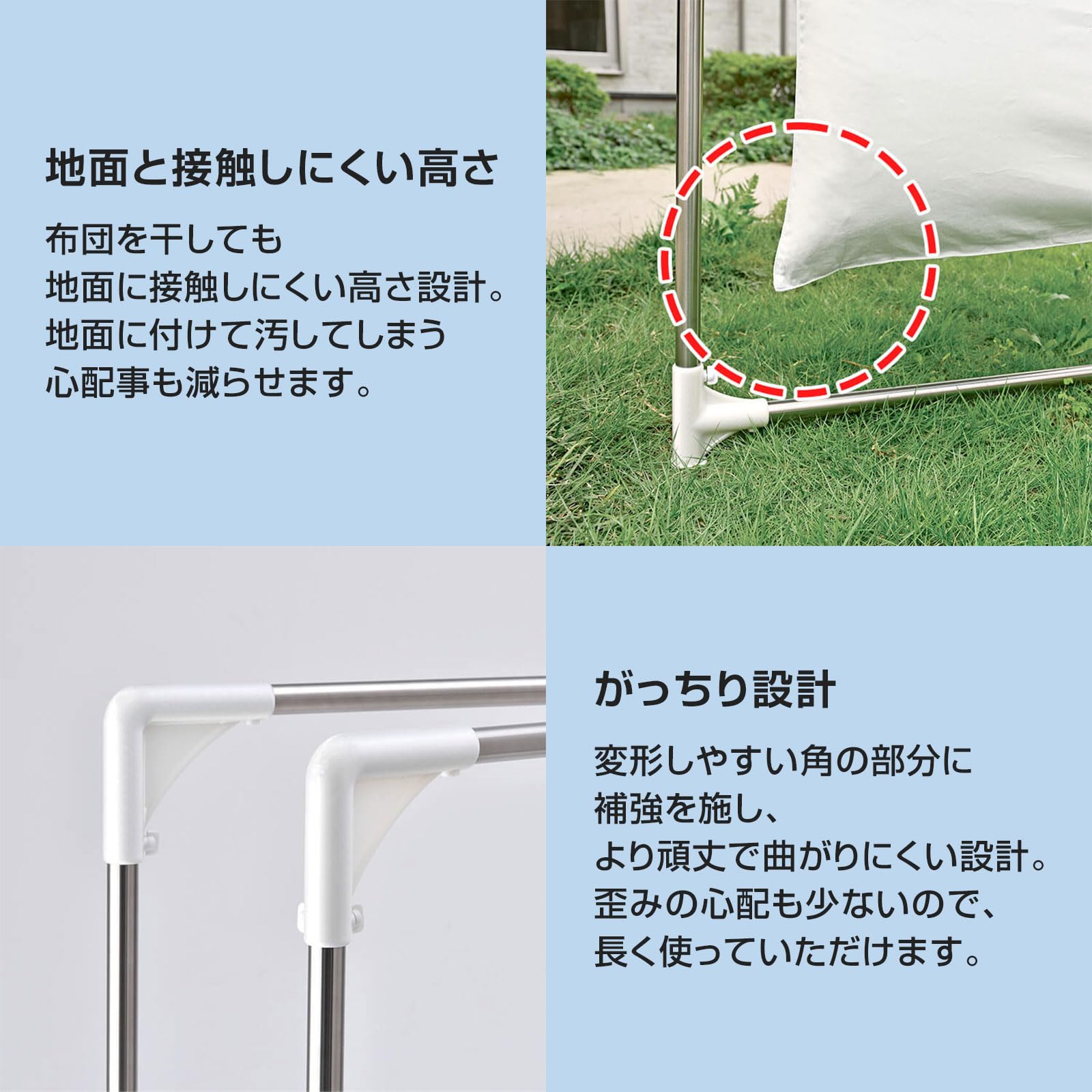 布団を干しても地面に接触しにくい高さ設計。