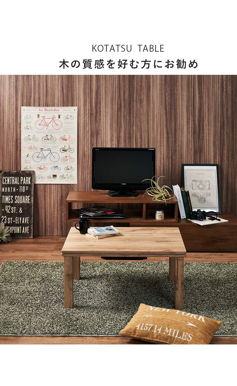 萩原 こたつ こたつテーブル センターテーブル カジュアル 一人用 コンパクト 【リアルな木目調天板】 長方形 ウッド調 ヴィンテージ 奥行60×幅75×高さ37 ナチュラル カルテス7560