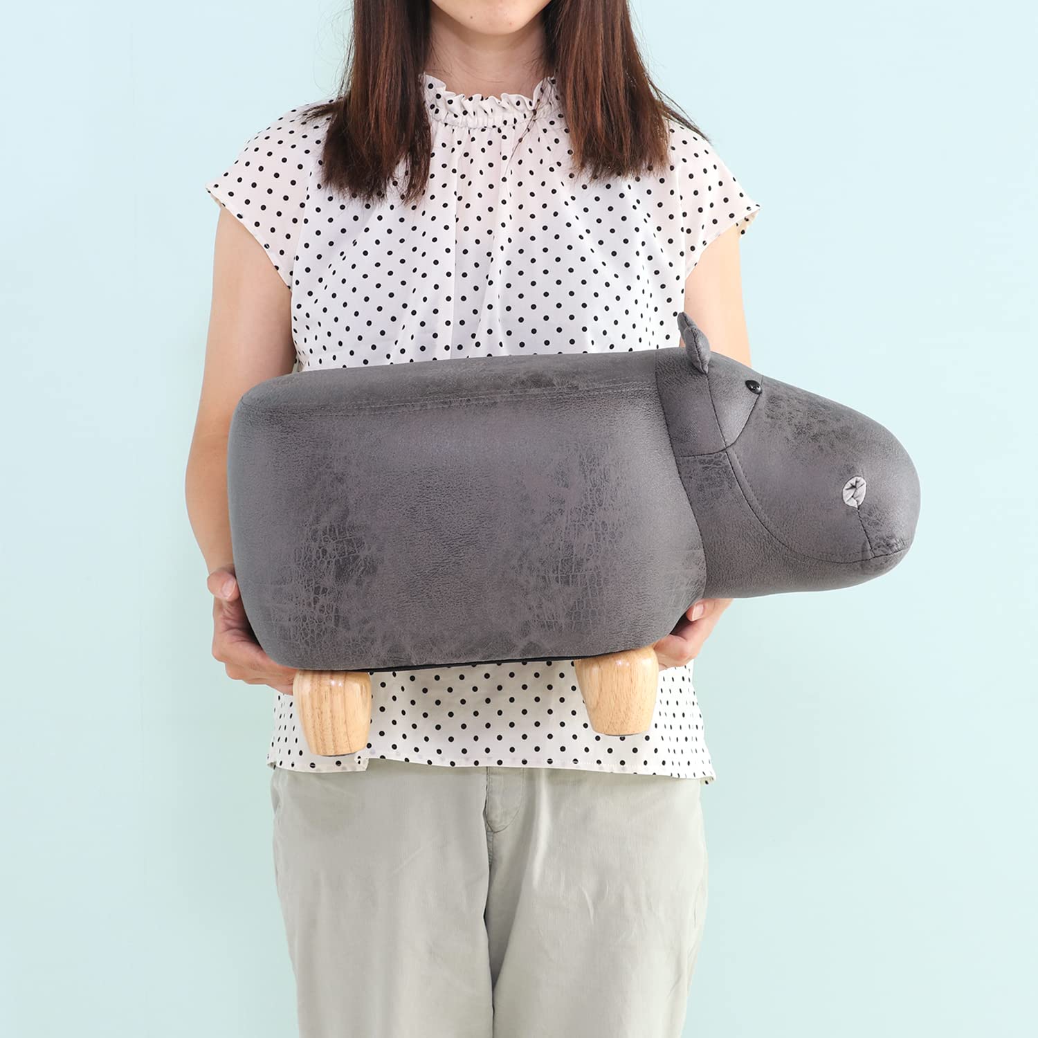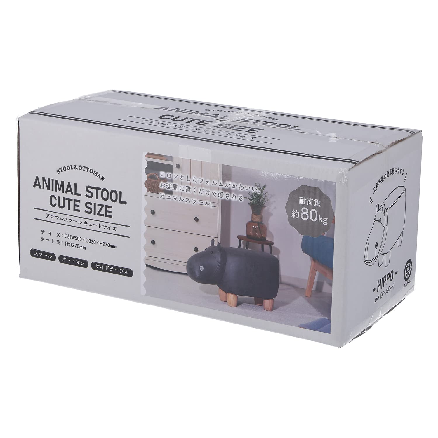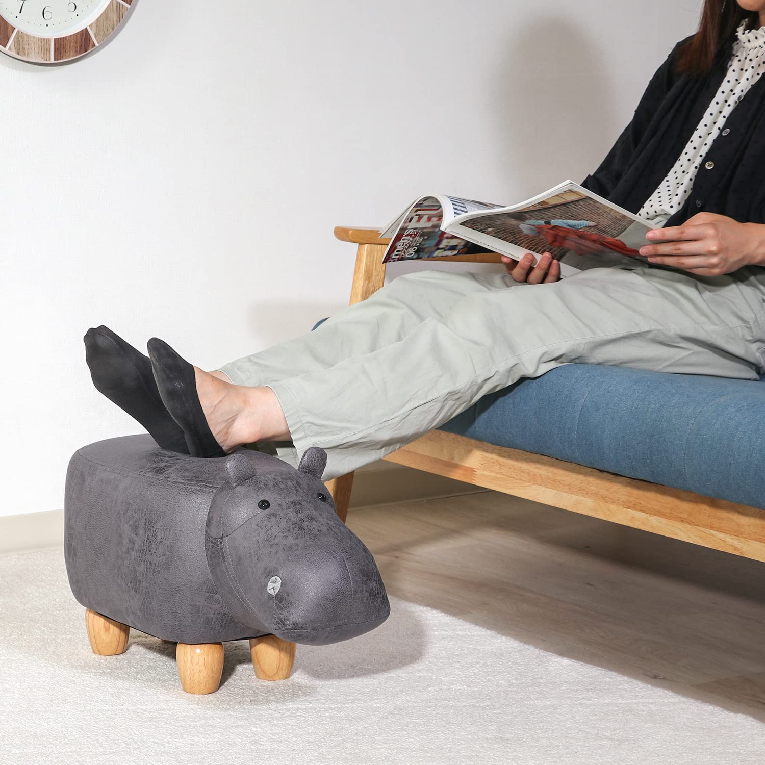 不二貿易 アニマルスツール 幅50×奥行33×高さ27cm カバ 耐荷重80kg オットマン 16744 ダークグレー