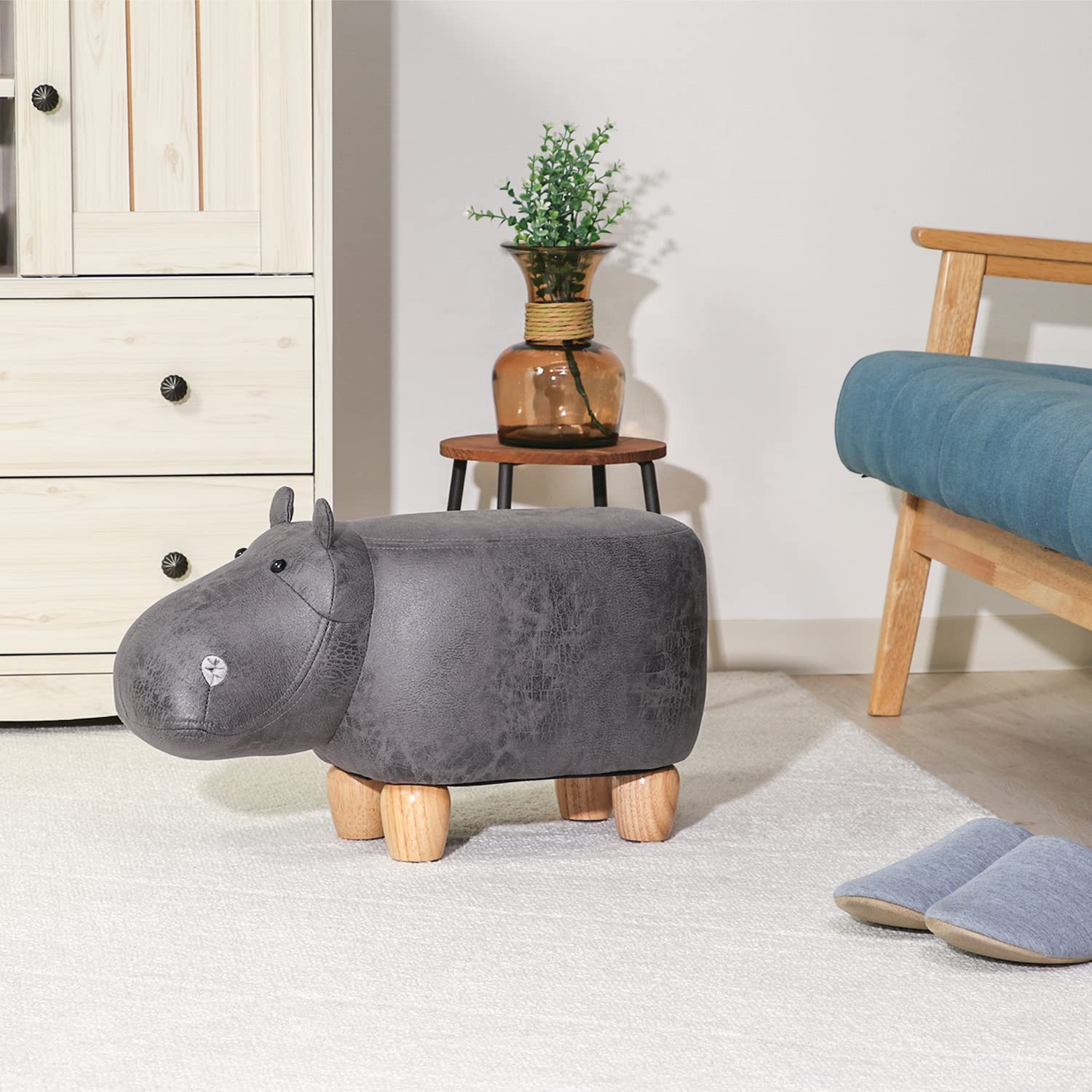 可愛いらしいカバさんのアニマルスツール!コンパクトなキュートサイズで高さも27㎝と低めの設計のため、お子さんも安心して座れます。スツールとしてでなく、ソファに座る際のオットマンとしてもご利用できます。