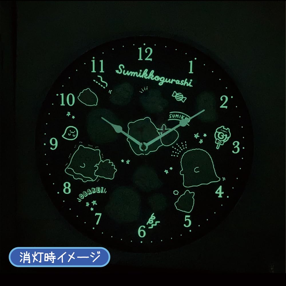 すみっコぐらしの蓄光ウォールクロックです。単3形乾電池1本使用(別売)
