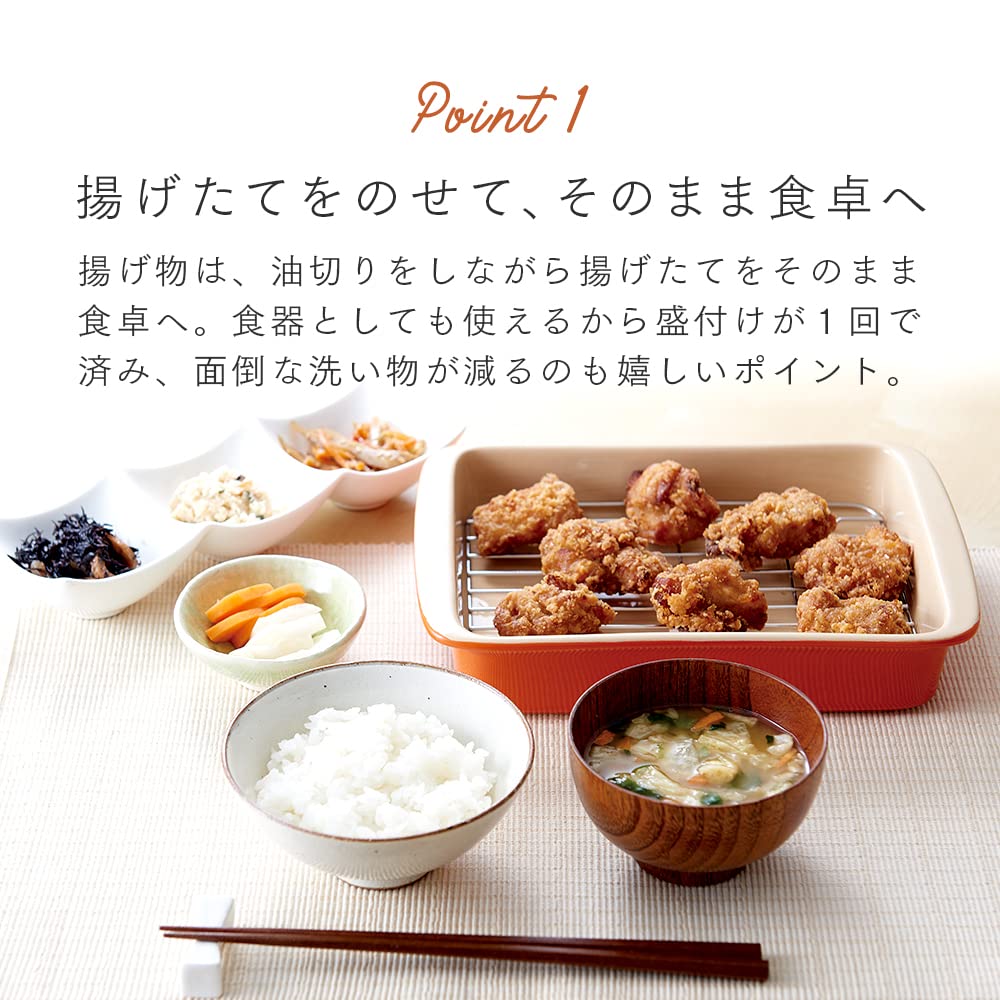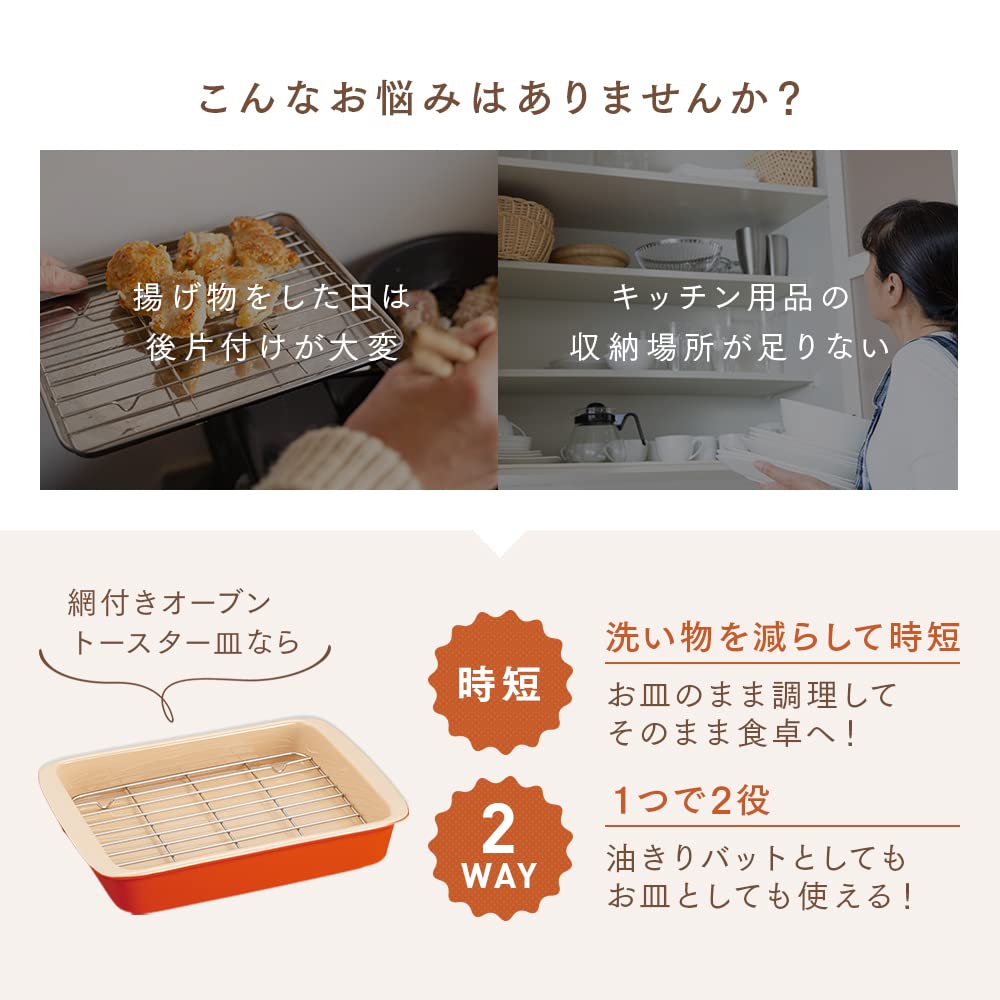 揚げ物の油切りとしても、オーブン皿としても使える2WAY皿!買ってきた唐揚げや天ぷらをカラッと温め直してそのまま食卓へ!専用の油切網付。オーブン、電子レンジ、オーブントースター、コンベクションオーブンにご利用できます。食洗機対応。※油切網は電子レンジにはご使用いただけません