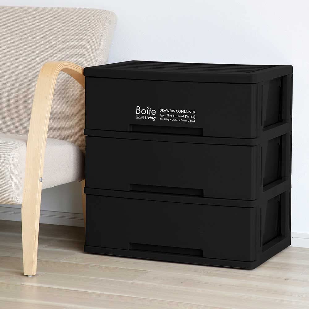 ベストコ 収納 チェスト 3段 リビング ワイド ブラック MA-4044 Boite