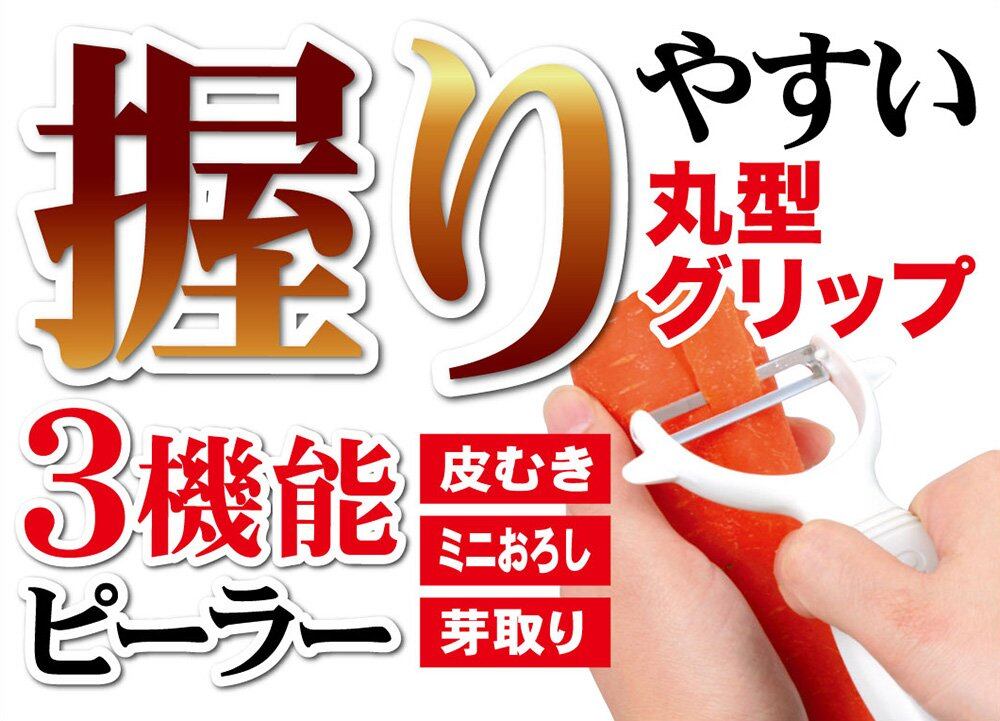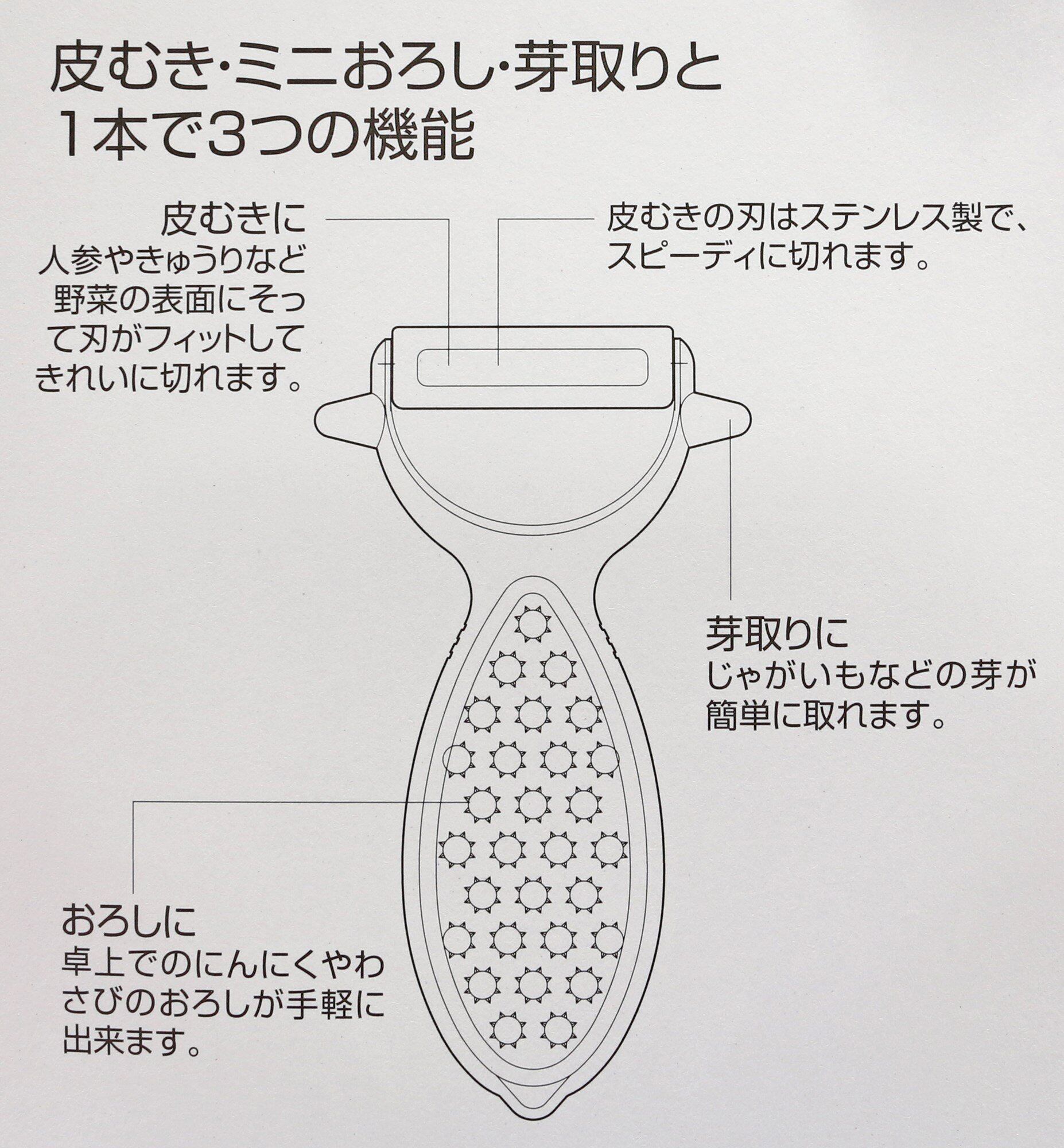 「皮むき」「ミニおろし」「ジャガイモの芽取り」の3機能ピーラー