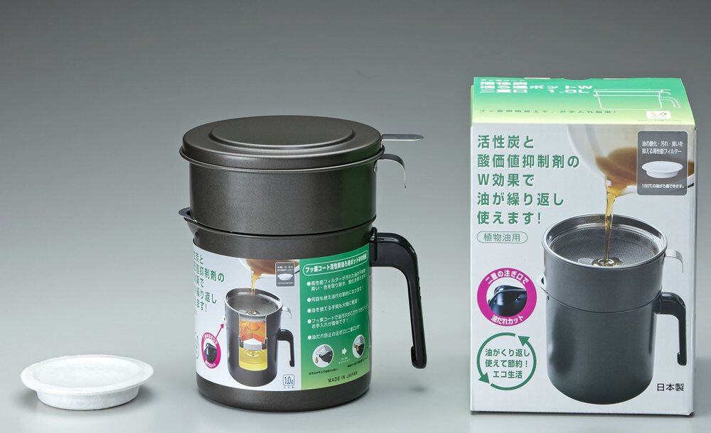 高木金属 オイルポット 油漉し器 油ポット 油入れ容器 フッ素コート 活性炭 二重口 日本製 1.0L KWP-1.0
