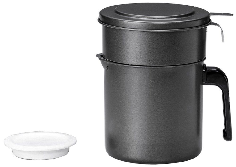 素材・材質:本体/鉄 (表面加工/フッ素樹脂塗膜加工) 、取っ手/フェノール樹脂・ステンレス、注ぎ口/アルミニウム合金、こしアミ/ステンレス、活性炭油ろ過フィルター/パルプ・レーヨン・活性炭・ケイ酸マグネシウム