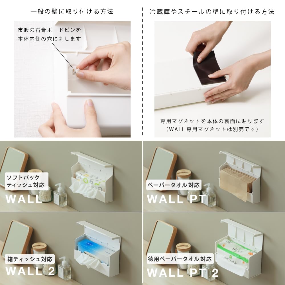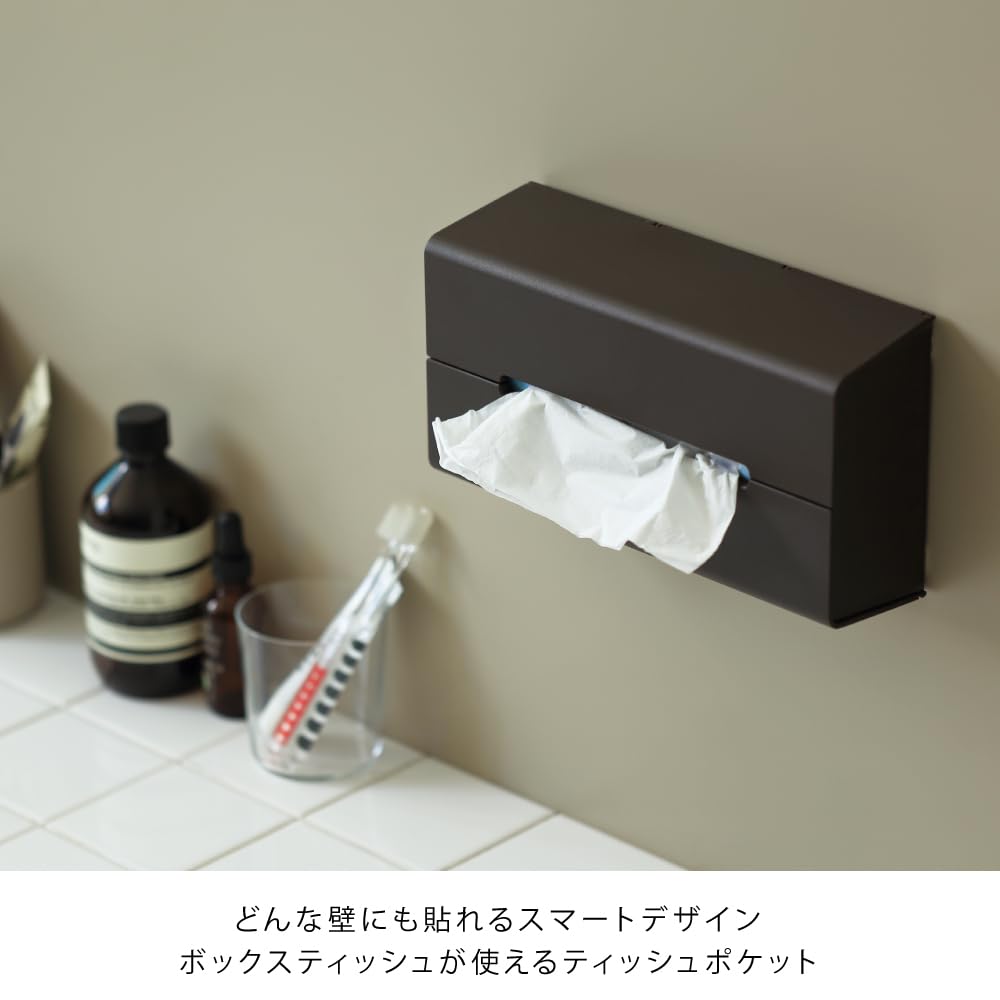 ボックスティッシュ(高さ6.5cmまで)が使えるティッシュポケットどんな壁にも取り付けられるスマートデザイン