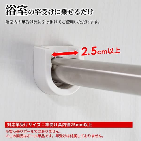 浴室に設置されているポール受けにのせて使えます (ポール受け具の内径25mm以上に対応)。
