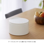 「ワンプッシュで臭いをフタする」 野菜くずなど、生ごみを捨てたい調理中のキッチンに最適。 フタ付きなので翌朝捨てるゴミやその臭いも一晩中目隠しできます。 当然の事、カバーをかぶせるだけで、中のポリ袋を簡単に隠せるオリジナル仕様。 ダイニングテーブルや書斎など、テーブルの上にゴミ箱が欲しい時にも、スッキリ便利にお使いいただけます。 デザイン設計では口をなるべく大きくごみが入りやすいようにサイジング、同時にコンパクトさを実現するために高さをなるべく低く抑え設計しました。 名前もゴミ箱では考えられない背の低さをキャラクターとしたところからflatと名付けました。