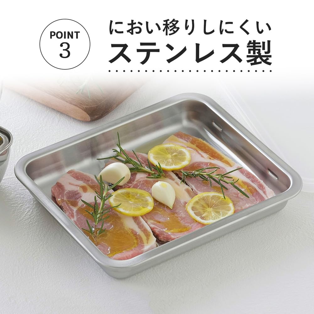下村企販 保存容器 ワイド 【日本製】 下ごしらえに便利 サビにくい 一時保存 作り置き ぎょうざ ハンバーグ フタ付き 浅型 1L ステンレス 燕三条 40747